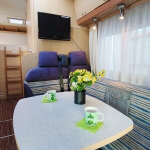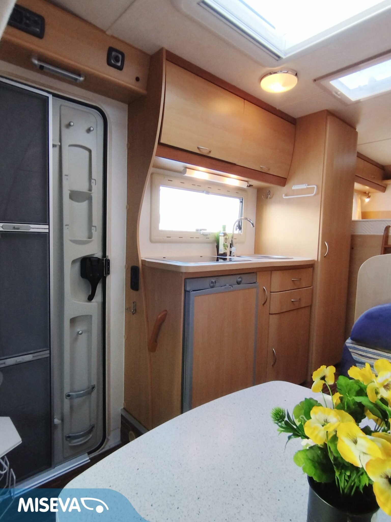 CD-soitin, Erikoisvanteet, Ilmastointi: Manuaalinen, Jääkaappi, Kasetti WC, Liesi, Lämminvesiboileri, Markiisi, Parivuode, Pyöräteline, Suihku, Sähkökäyttöiset ikkunat, Sähköpeilit, Sähkörappu, TV-antenni tai lautasantenni, Tuplapohja, Vakionopeudensäädin, Truma, Ilmastointi (ohjaamo), Lohkolämmitin, Polkupyöräteline, Eristetty harmaavesisäiliö, televisio