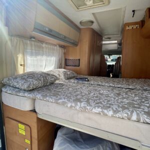 Peräpäästä löytyy parivuode ja tilava tavaratila johon on pääsy niin auton sisä- kuin ulkopuolelta.
