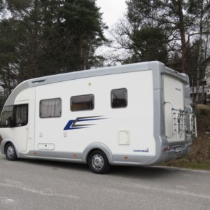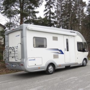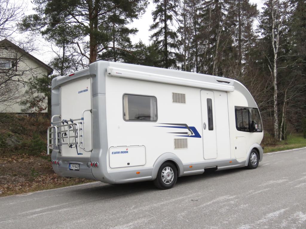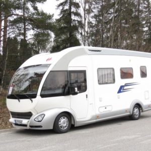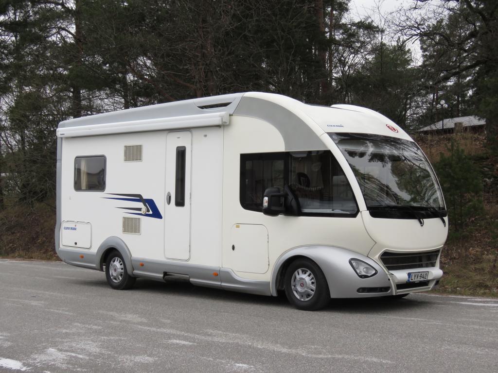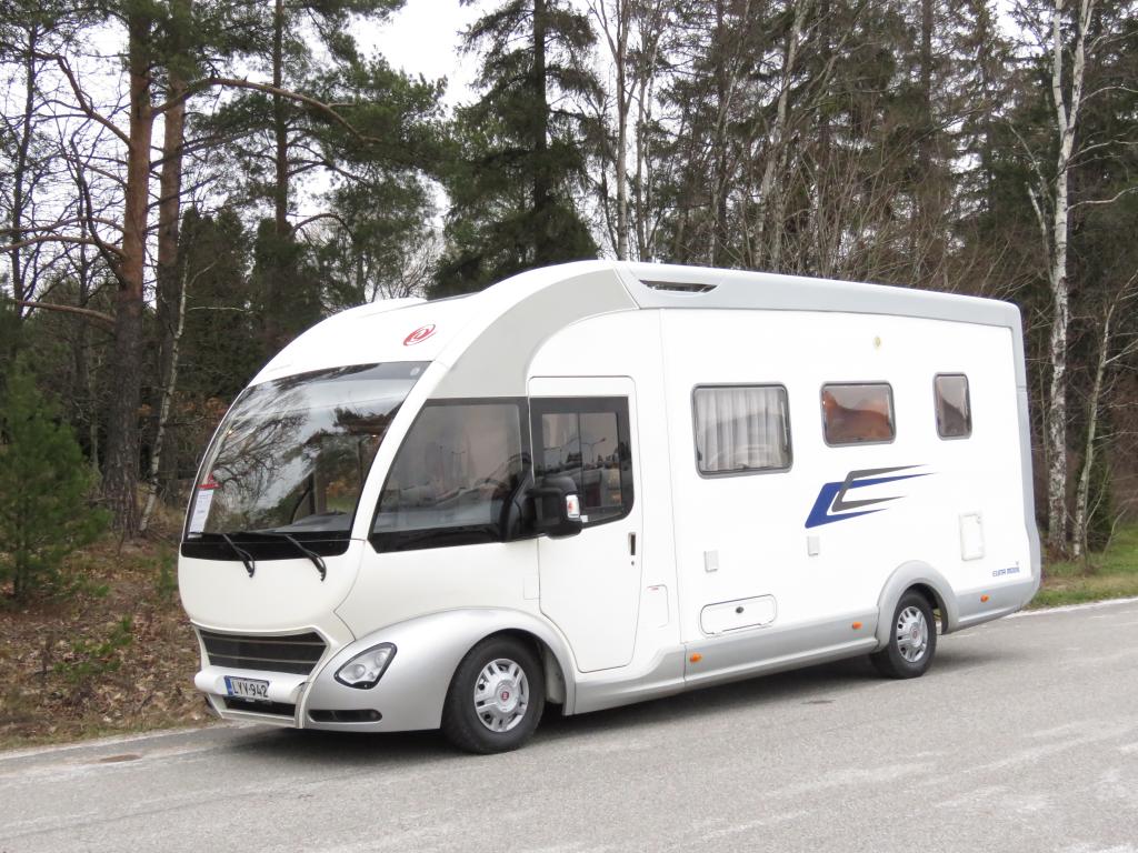 Varusteina mm: Ilmastointi ohjaamossa, Markiisi, Pyöräteline, Vakionopeudensäädin, Aurinkopaneeli, tilava suihku..