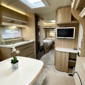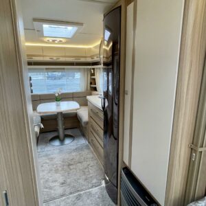 Hyvin pidetty, moderni vaunu hyvin varustellulla keittiöllä! Erillisvuoteista saa levitettyä ruhtinaallisen parisängyn ja istuinryhmästä muokattua kahden nukuttavan vuoteen myös. Korkeassa jääkaapissa paljon tilaa ruokatarvikkeille, huomasithan myös kätevän maustekaapin!
