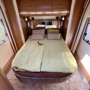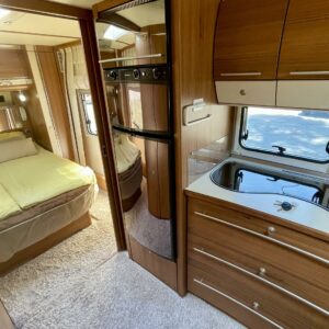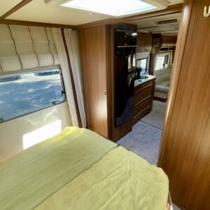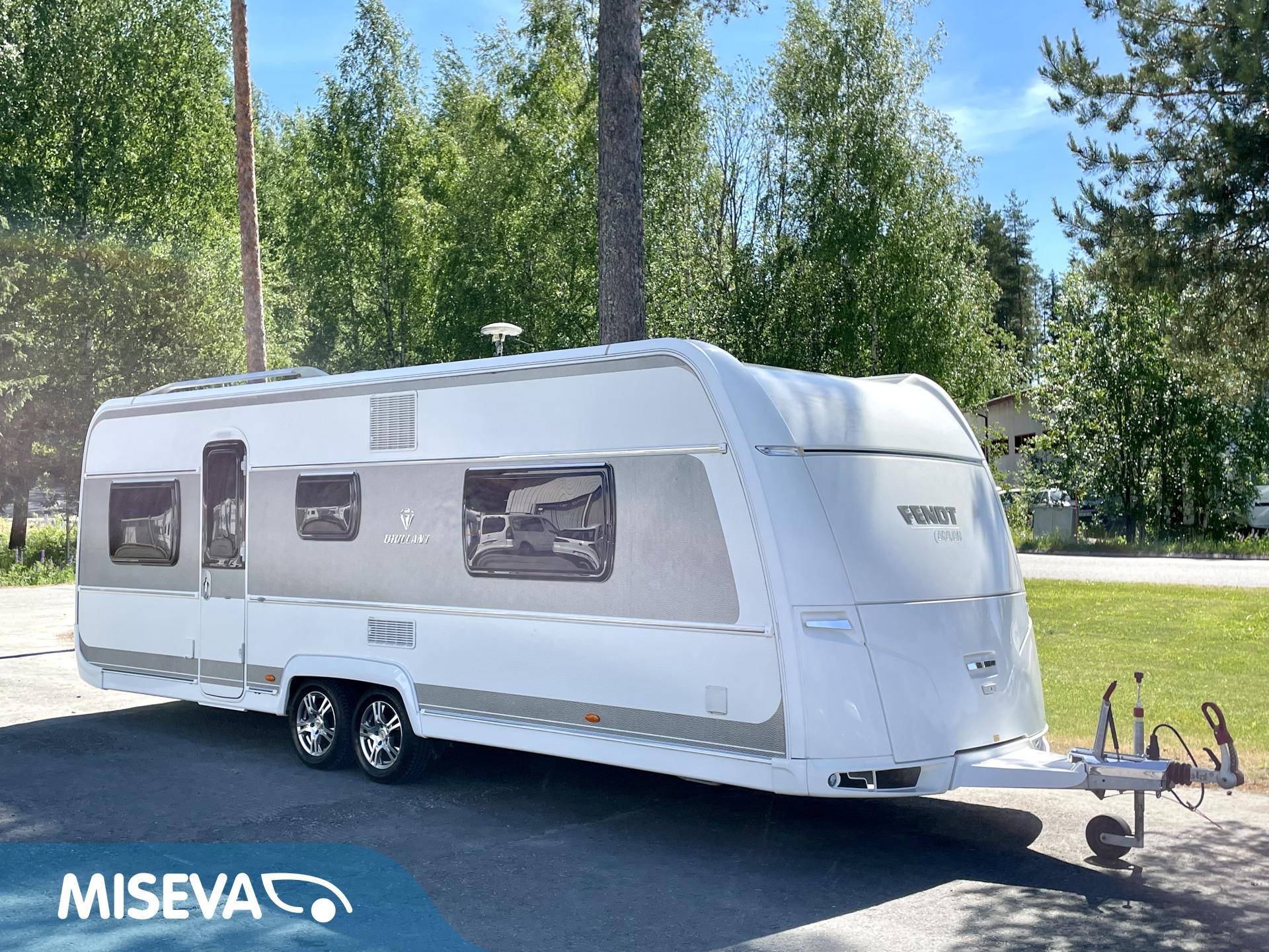 Luxusta, tyyliä ja tähtitaivasvalaistusta mitä voi ihastella nahkasohvalta. Fendtin hieno vaunu missä nimi (Brillant = Loistava) kruunaa kokonaisuuden. Vaunun etuosasta löytyy käytännöllinen saarekevuoderatkaisu. Kulku vuoteelle on helppoa ja esteetöntä. Vuoteiden molemmilla puolilla on vaatekaapit ja vuoteen alle jää säilytystiloja. Makuuhuone saadaan välioven avulla rajattua omaksi privaatti-osastoksi. Keskelle on sijoitettu keittiö, sekä WC/kylpyhuonetilat. Keittiövarusteisiin kuuluu mm. iso jääkaappi erillisellä pakastinlokerolla, sekä kaasu-uuni. Vaunun takaosa on yhtä isoa U-ryhmää ja tyylin sopivasti nahkaverhoiltuna, tottakai. No onhan tämä nyt oikeasti hieno kaikkine tähtitaivasvalaistuksineen ja upeine pintoineen höystettynä. Lämmityksenä Alden nestekeskuslämmitys, eli kyllä tarkenee kovemmillakin keleillä. Kesäkuumalla sisätilat pysyvät halutussa viileydessä Dometicin kattoilmastoinnin avulla. Tule, näe, koe ja ehkä jopa rakastu tähän mahtavat matkailuelämykset tarjoavaan laatuvaunuun.