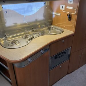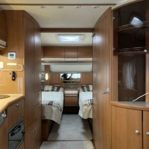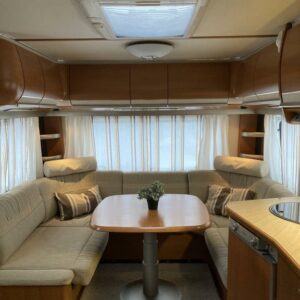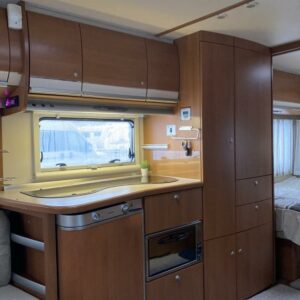 Varusteena mm; Alde- nestekiertolämmitys, Kaasu-uuni, Aurinkopaneeli ja invertteri, Kaasupullonvaihtaja, Sähkön- ja kaasun ulosotto, TV- Antenni,..