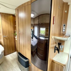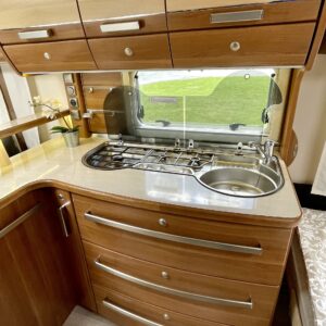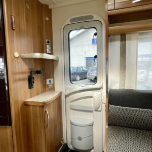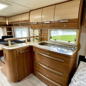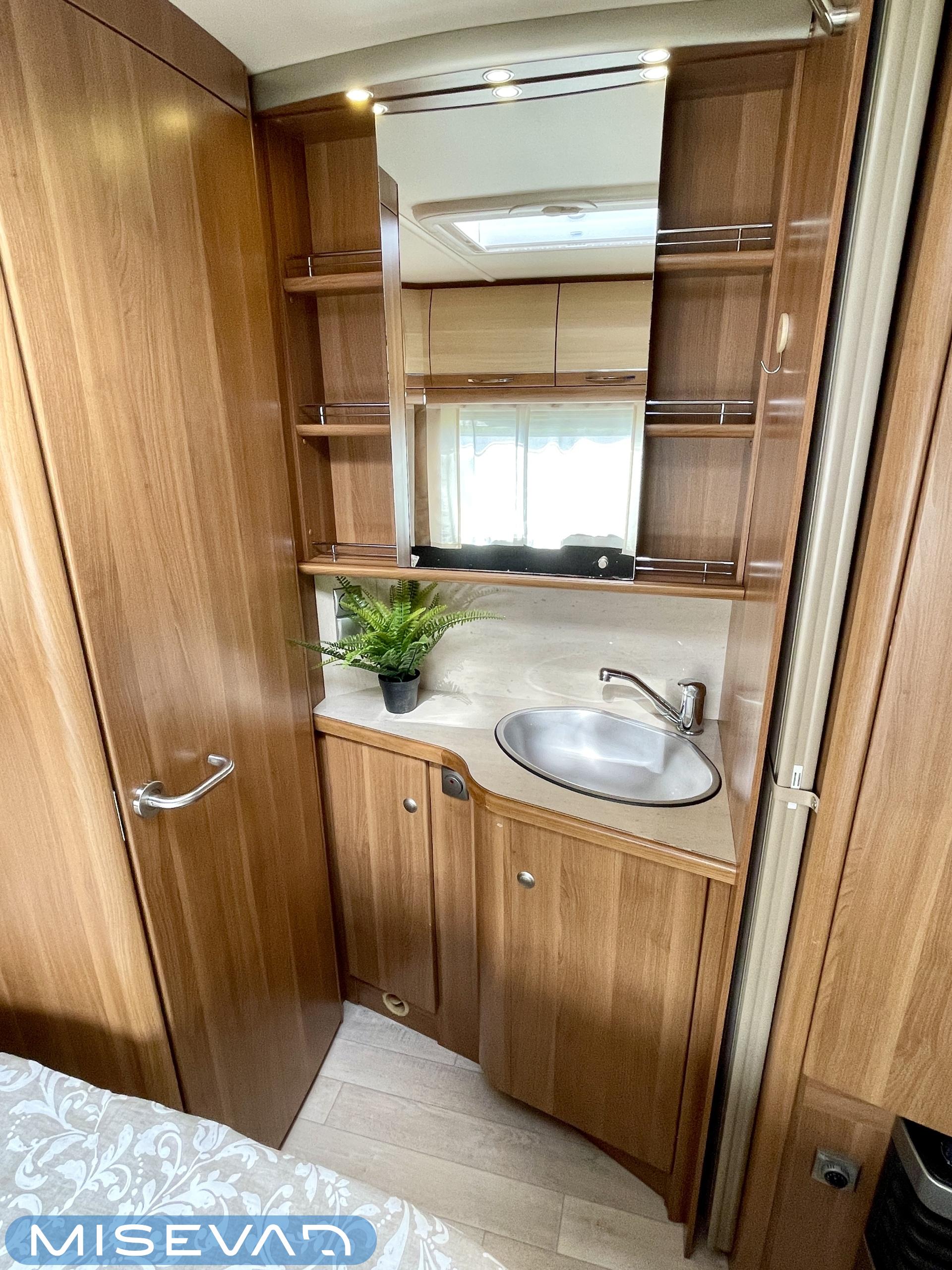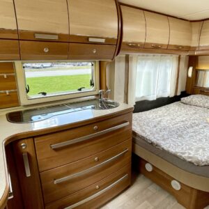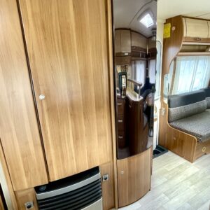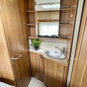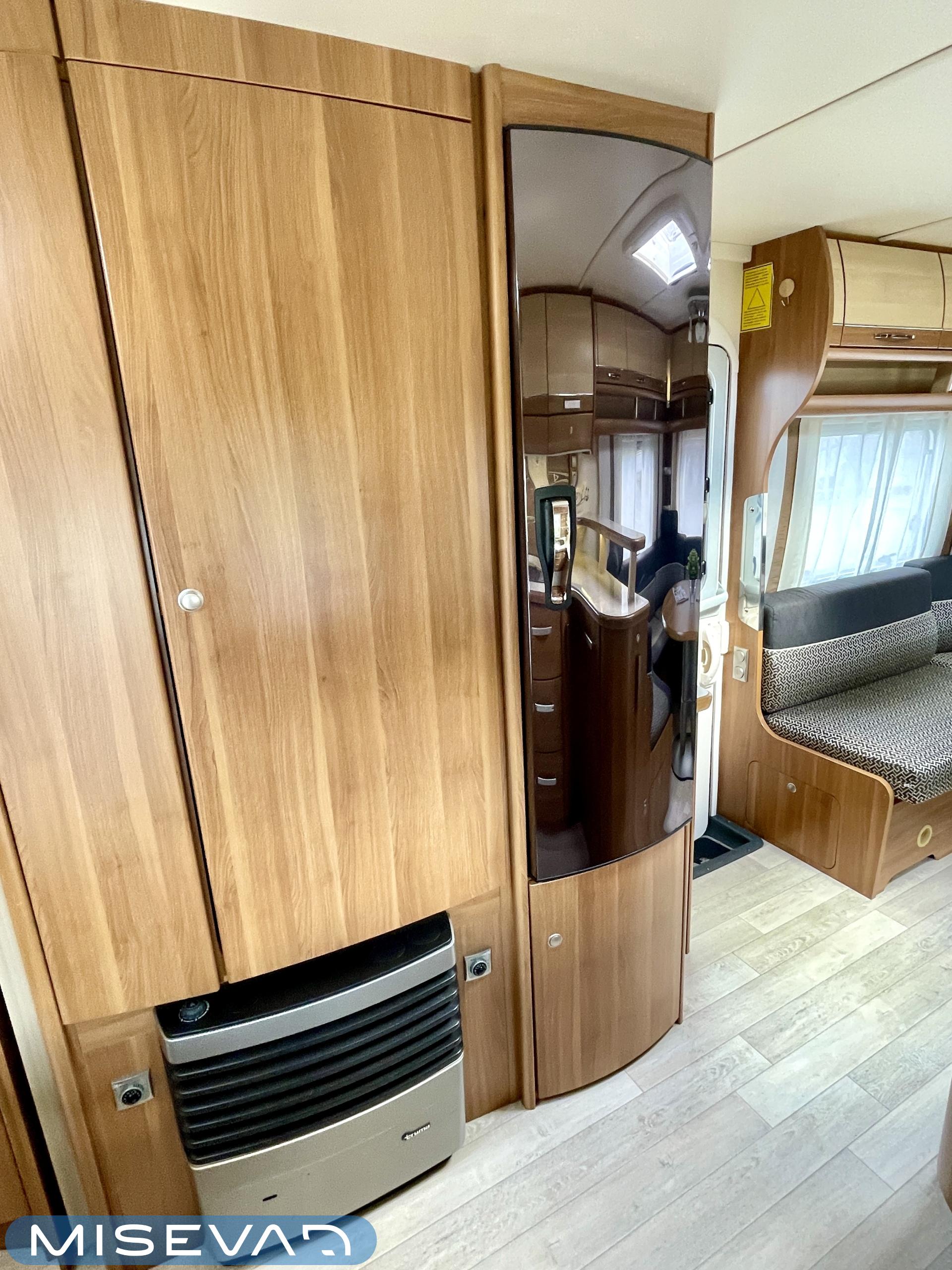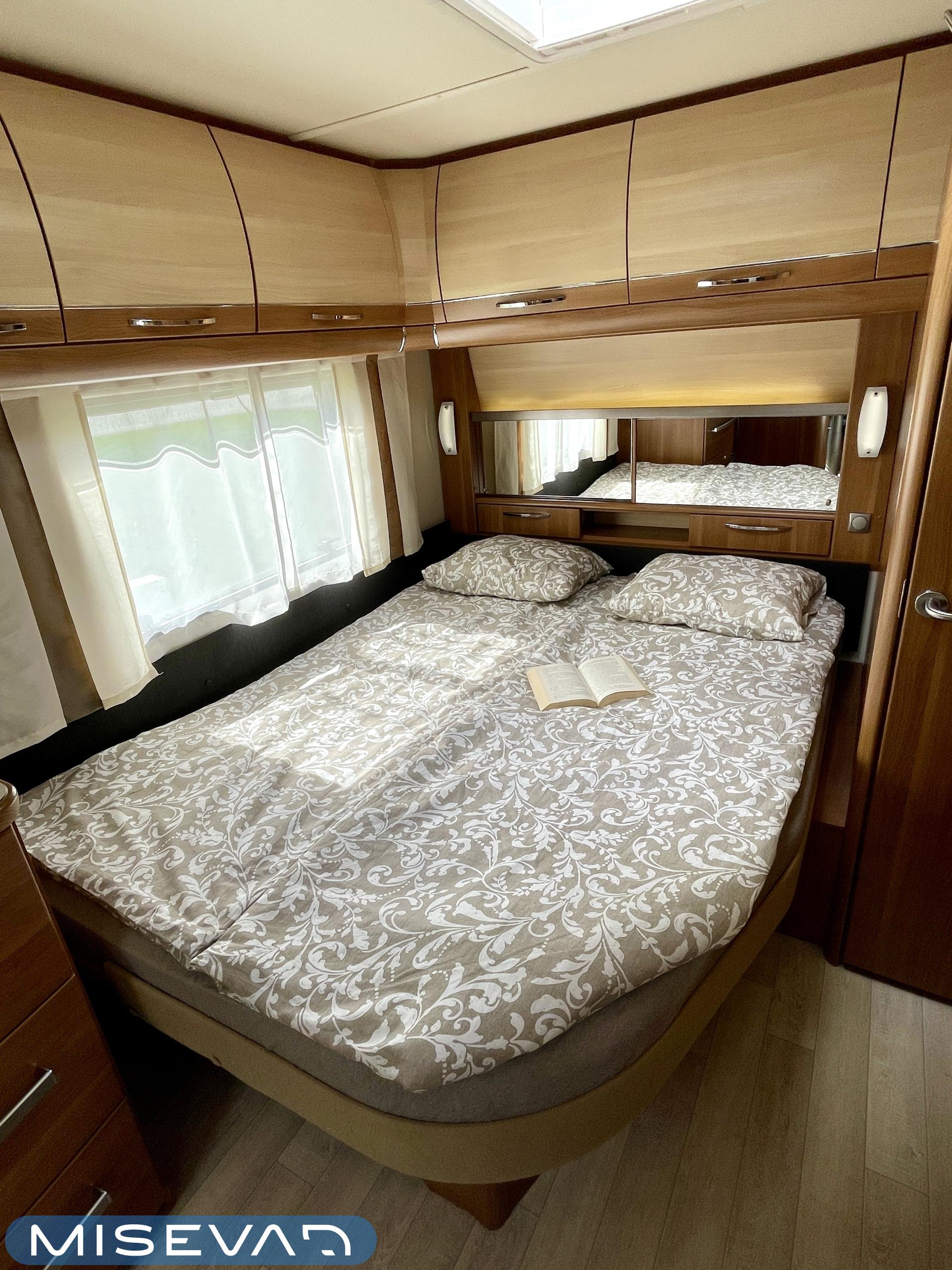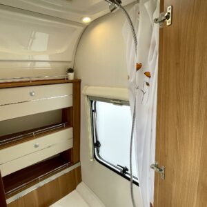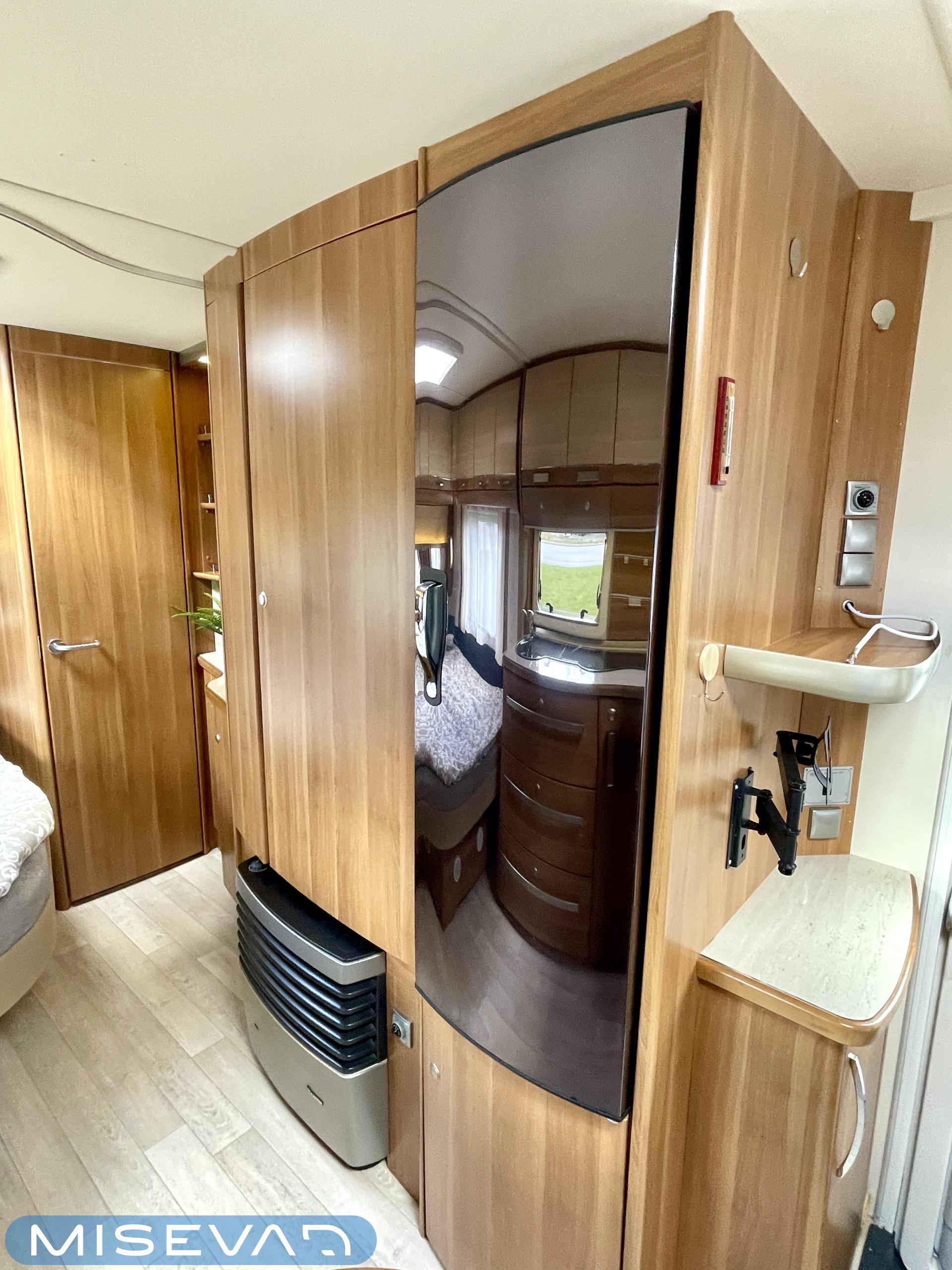 Fendtin hillitty värimaailma ihastuttaa heti oven avauduttua. Vaunun takaosassa on muhkea pöytäryhmä, jonka ympärille mahtuu helposti kuusikin ihmistä viettämään aikaa. Täydellinen tila vaikkapa peli-illalle. Keittiössä on laskutilaa kahdessa tasossa. Kiva lisä karavaanarikokille. Vetolaatikostot on isot ja L-mallinen pöytä kätkee sisäänsä yllättävän paljon säilytystilaa. Päätyyn on tehty innovatiivinen säilytysratkaisu. Kaappitilaa on kivasti muutenkin ympäri vaunua. Etuosan sänky on mukavan leveä ja alta löytyy tila, vaikkapa ulkokalusteille. Ulkoluukusta pääsee myös ottamaan terassituolit esille. WC:stä löytyy suihku mahdollisuus. Kaikenkaikkiaan vaunu tarjoaa juuri sitä mitä lupaakin. Siistiä tyylikkyyttä, näppärässä kokoluokassa. Tyylikäs helmi!