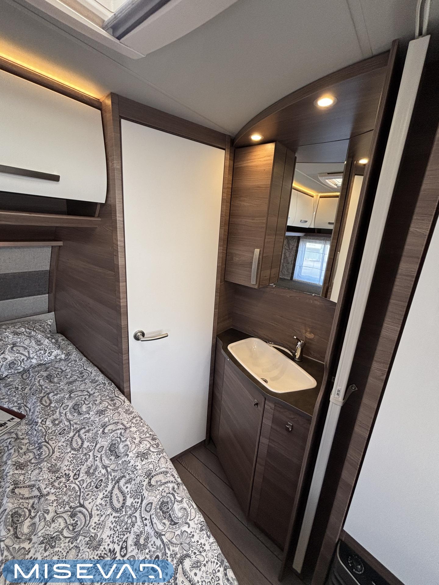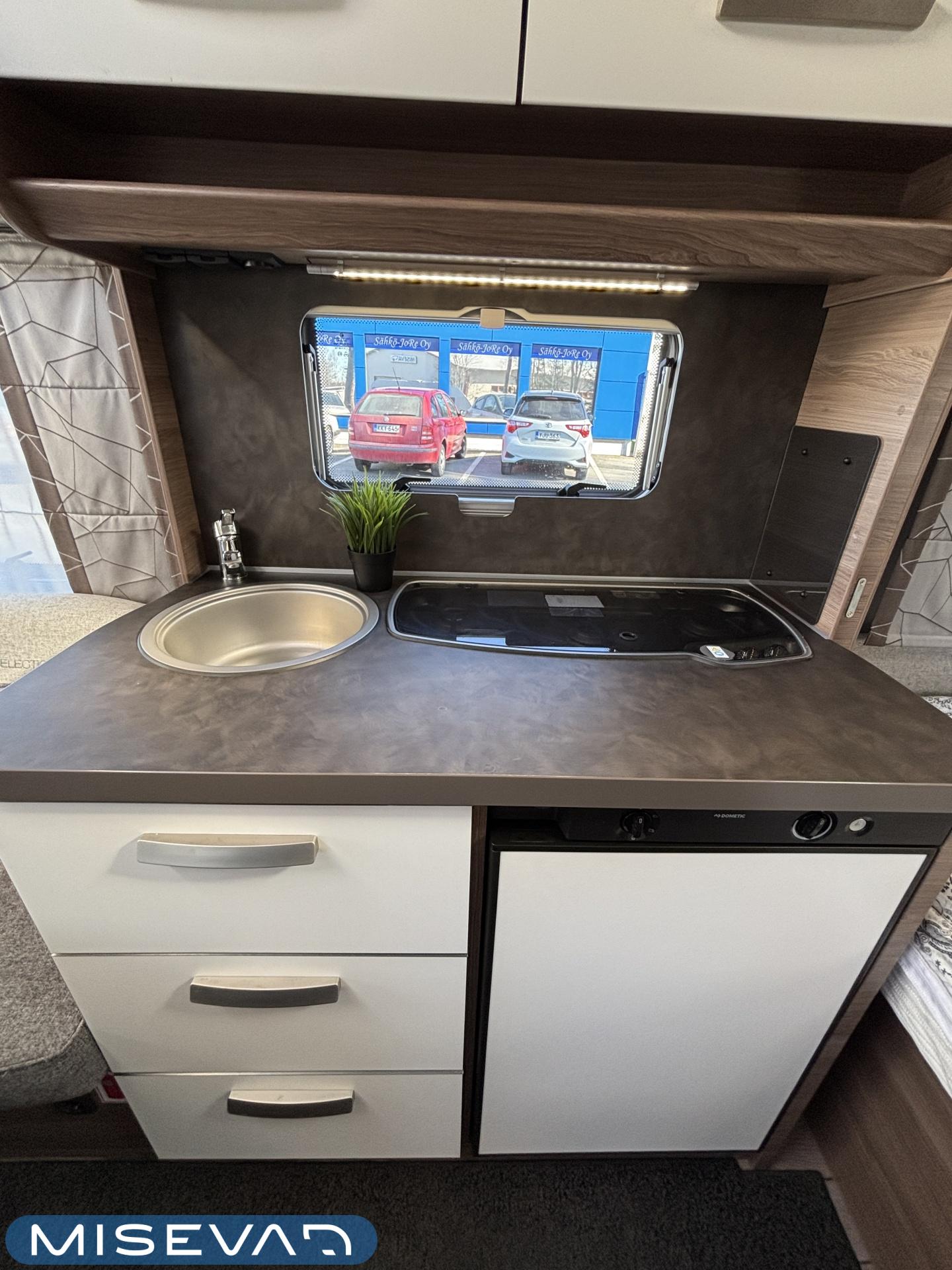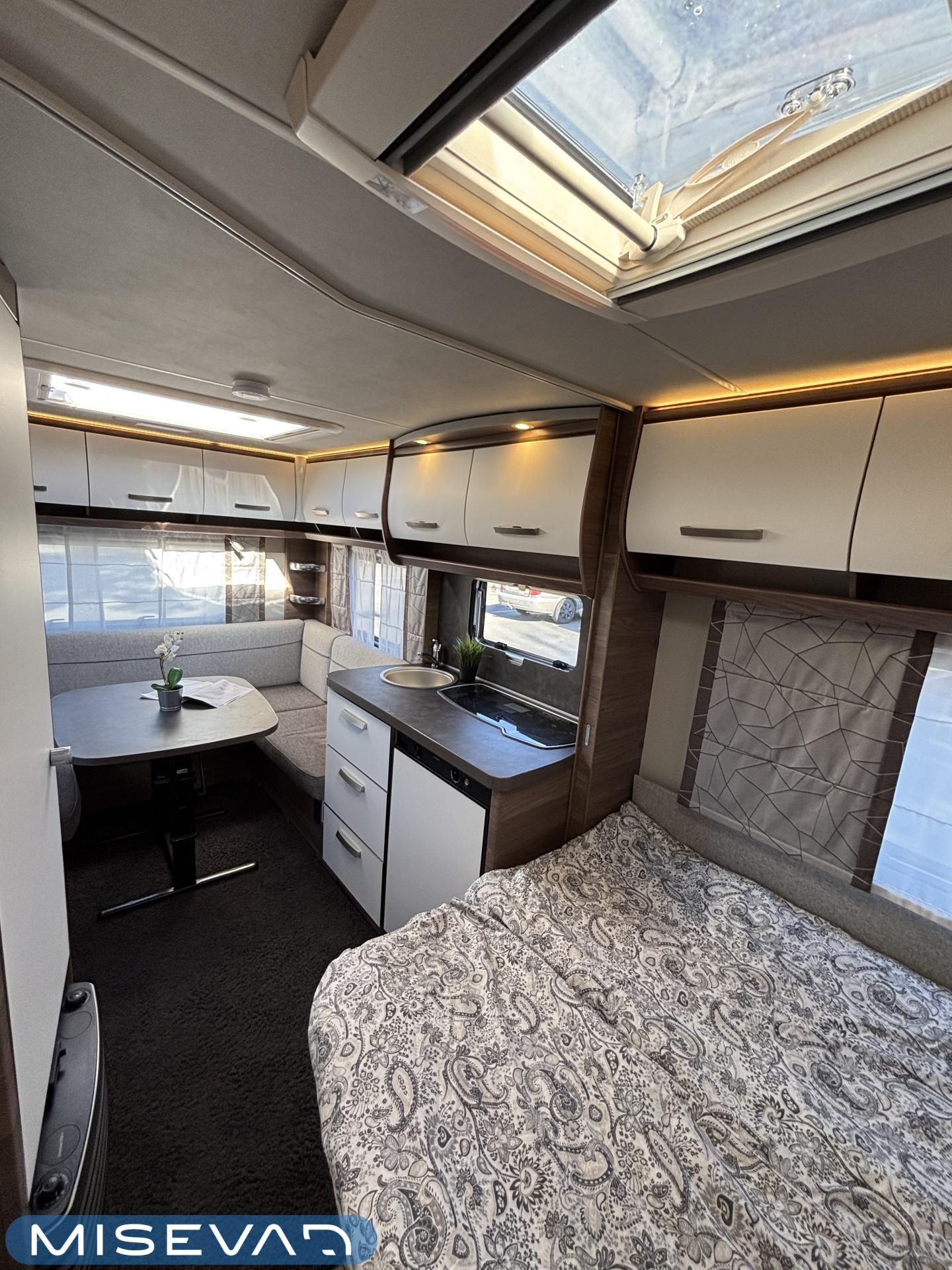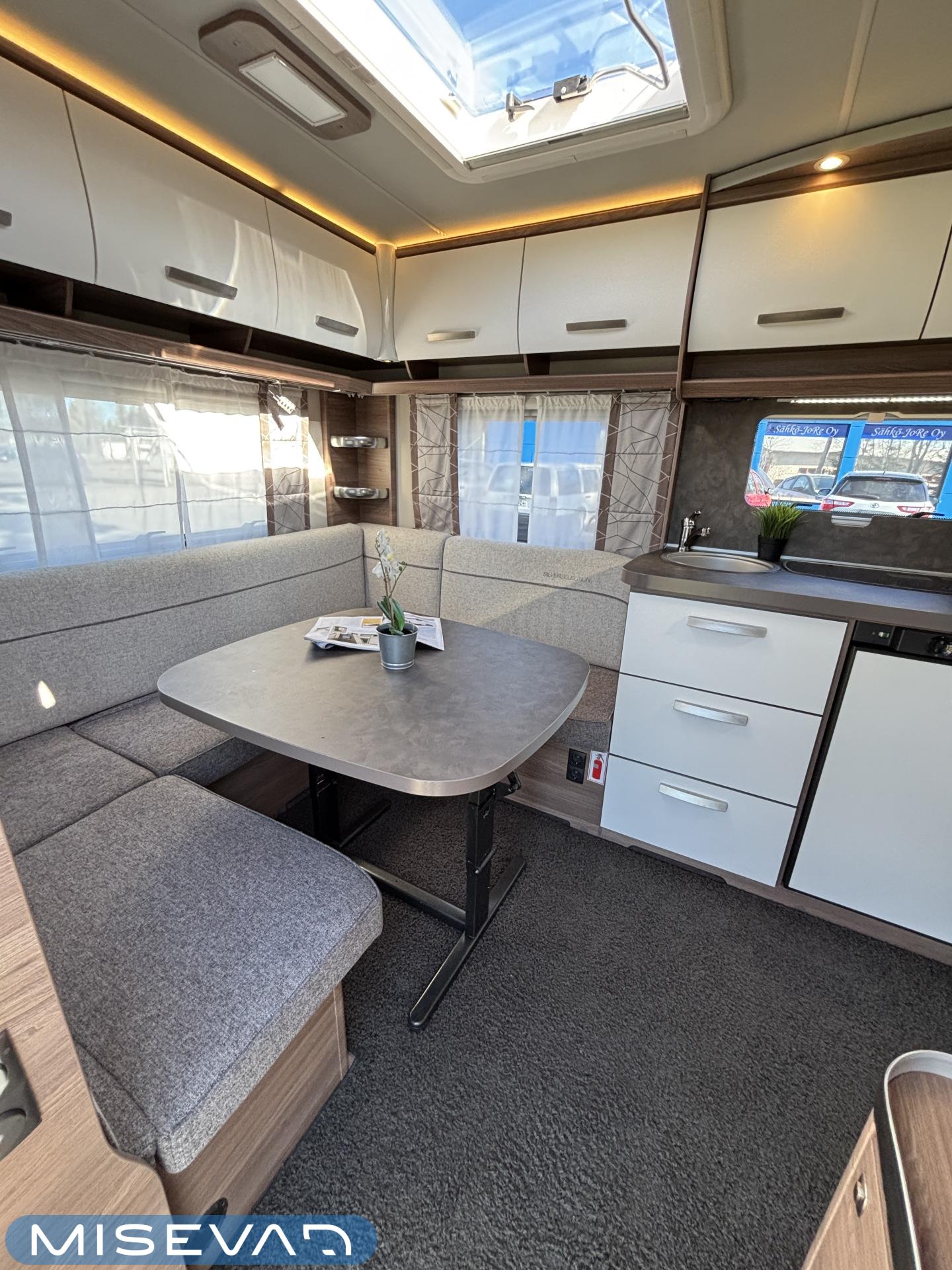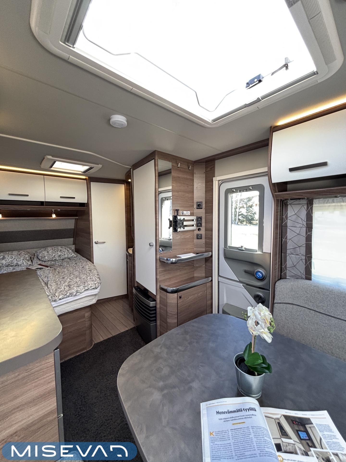 Erillisvuoteet, Kasettiverhot, Kasetti WC, Jääkaappi, Kattoluukku, Ilmastointi: Automaattinen, Lämminvesiboileri, Markiisi, Pesuallas, Pakastelokero, Tukijalat, Trumatic, Lattialämmitys, Sähköpatruuna, Suihku