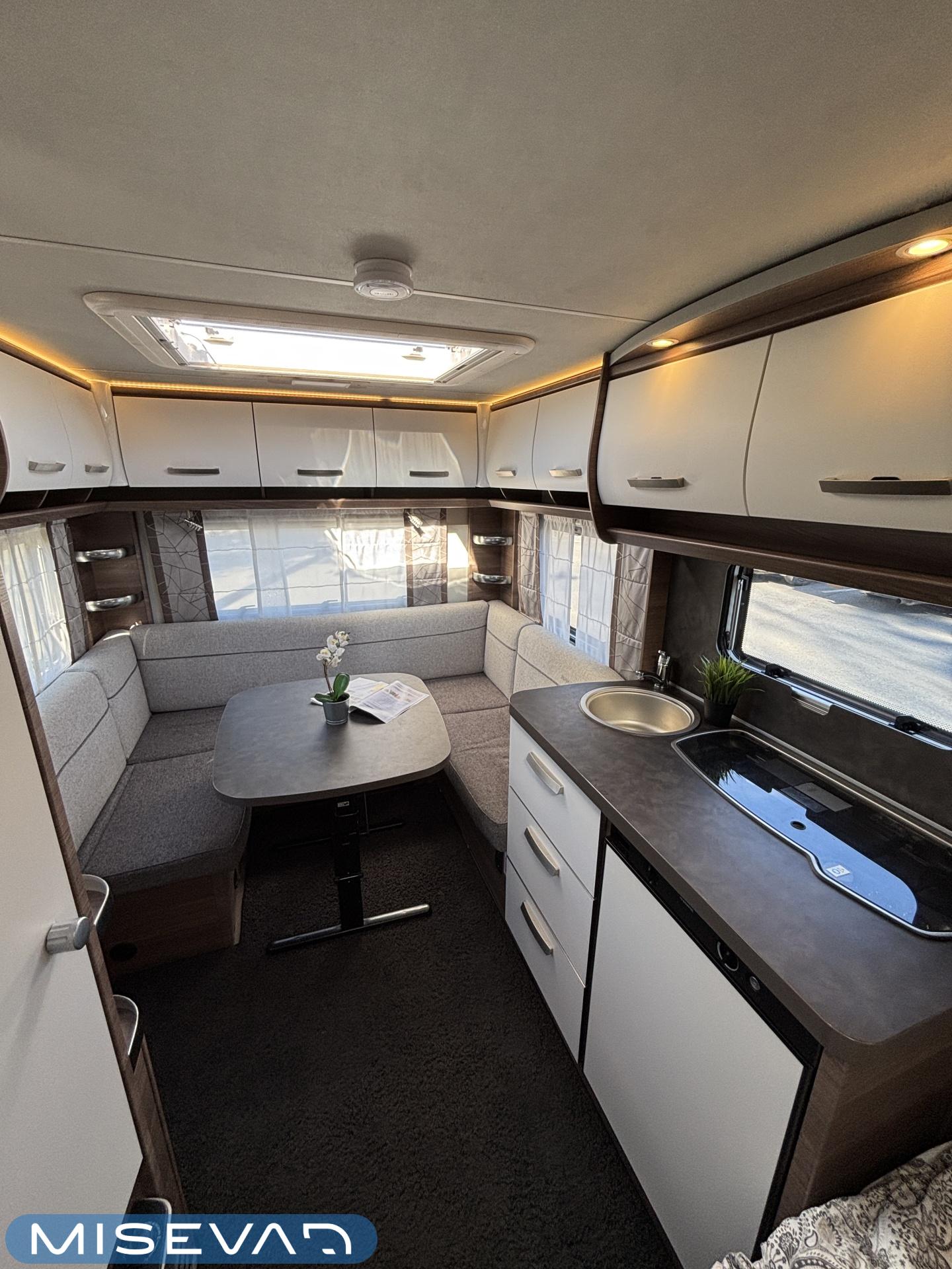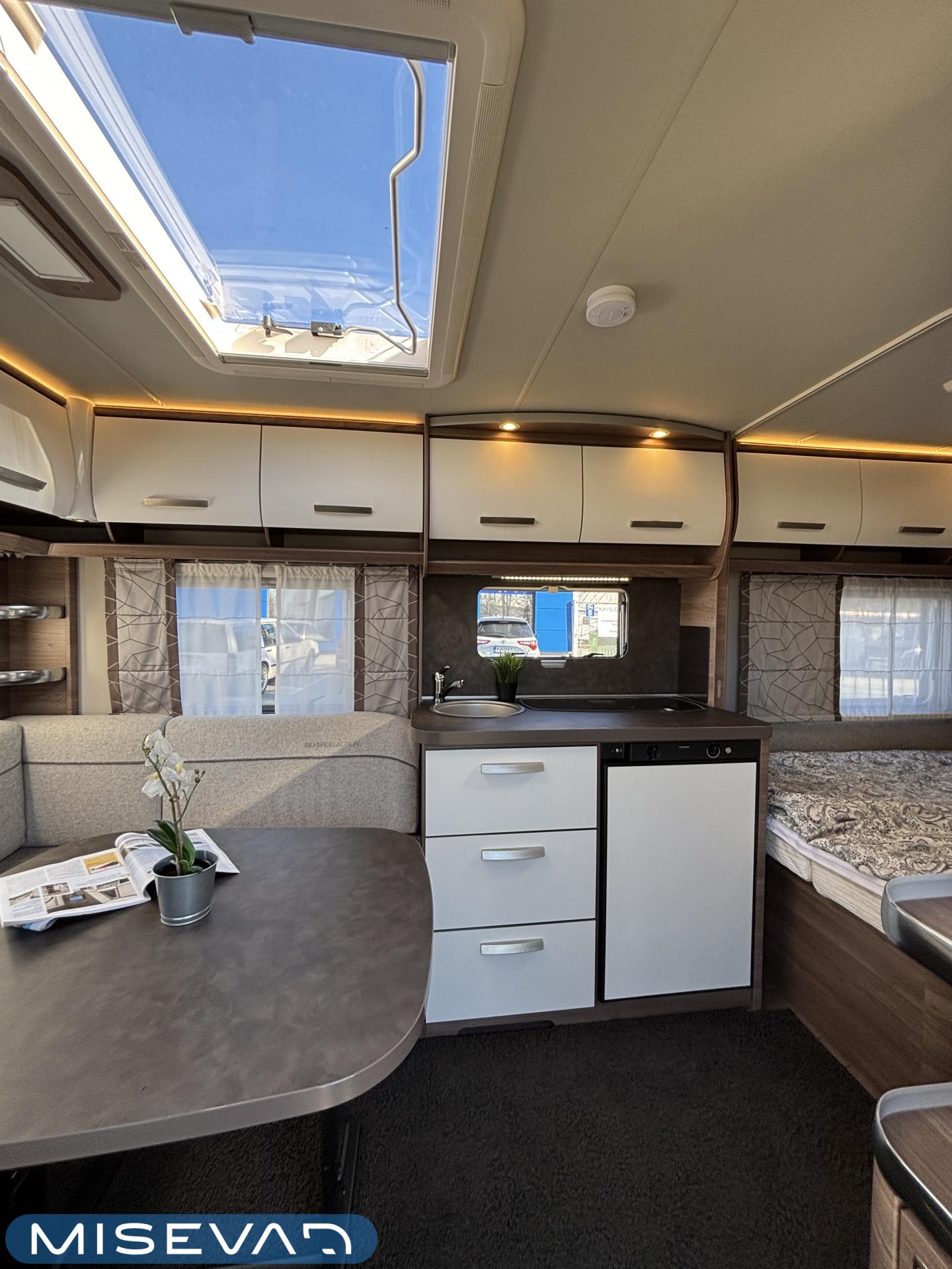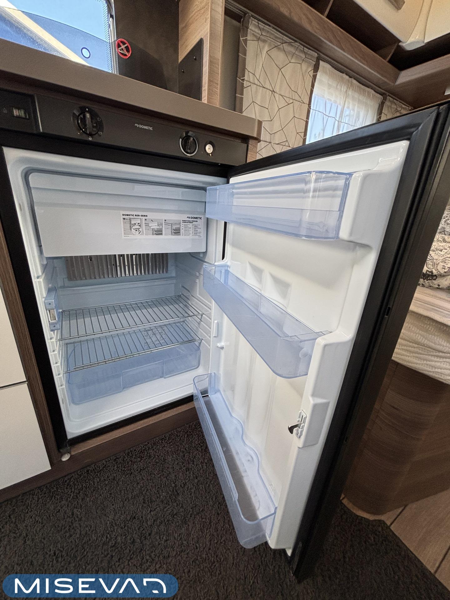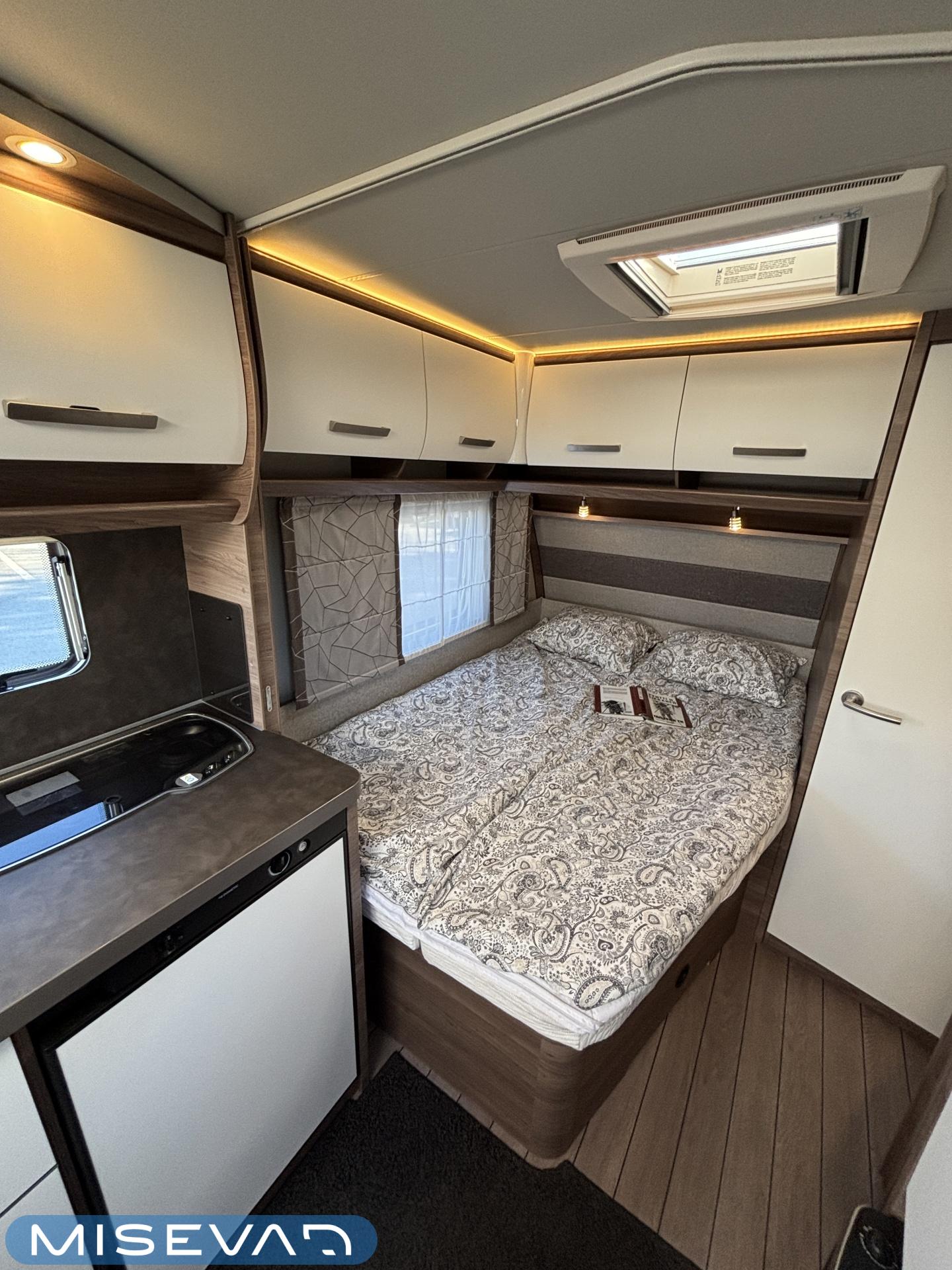 Erillisvuoteet, Kasettiverhot, Kasetti WC, Jääkaappi, Kattoluukku, Ilmastointi: Automaattinen, Lämminvesiboileri, Markiisi, Pesuallas, Pakastelokero, Tukijalat, Trumatic, Lattialämmitys, Sähköpatruuna, Suihku