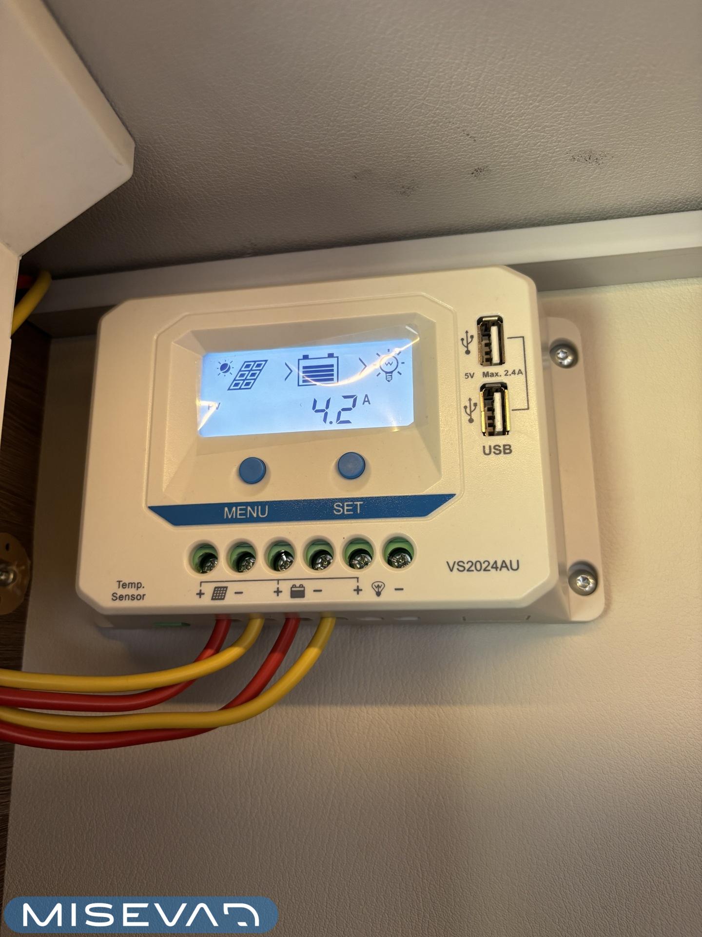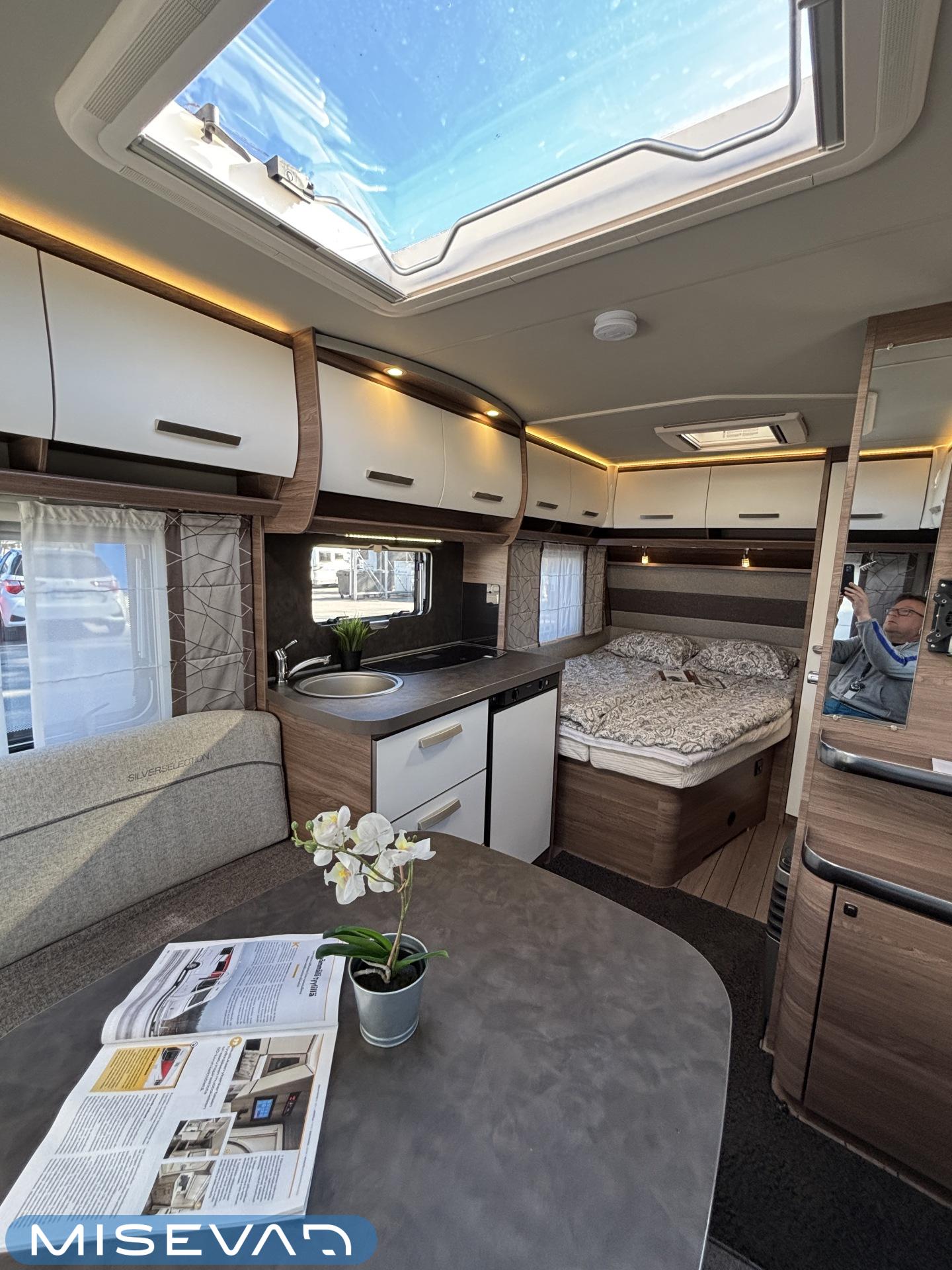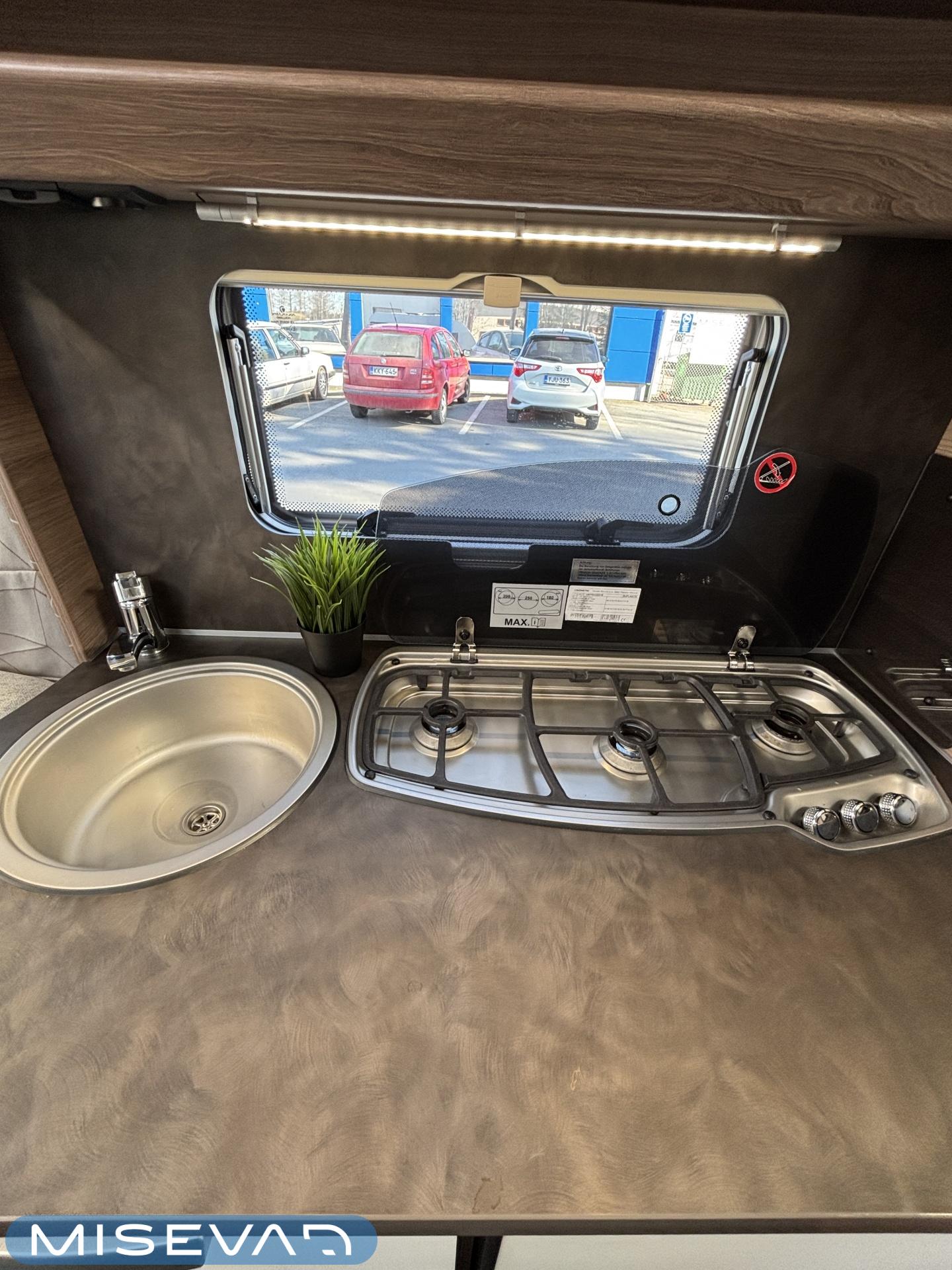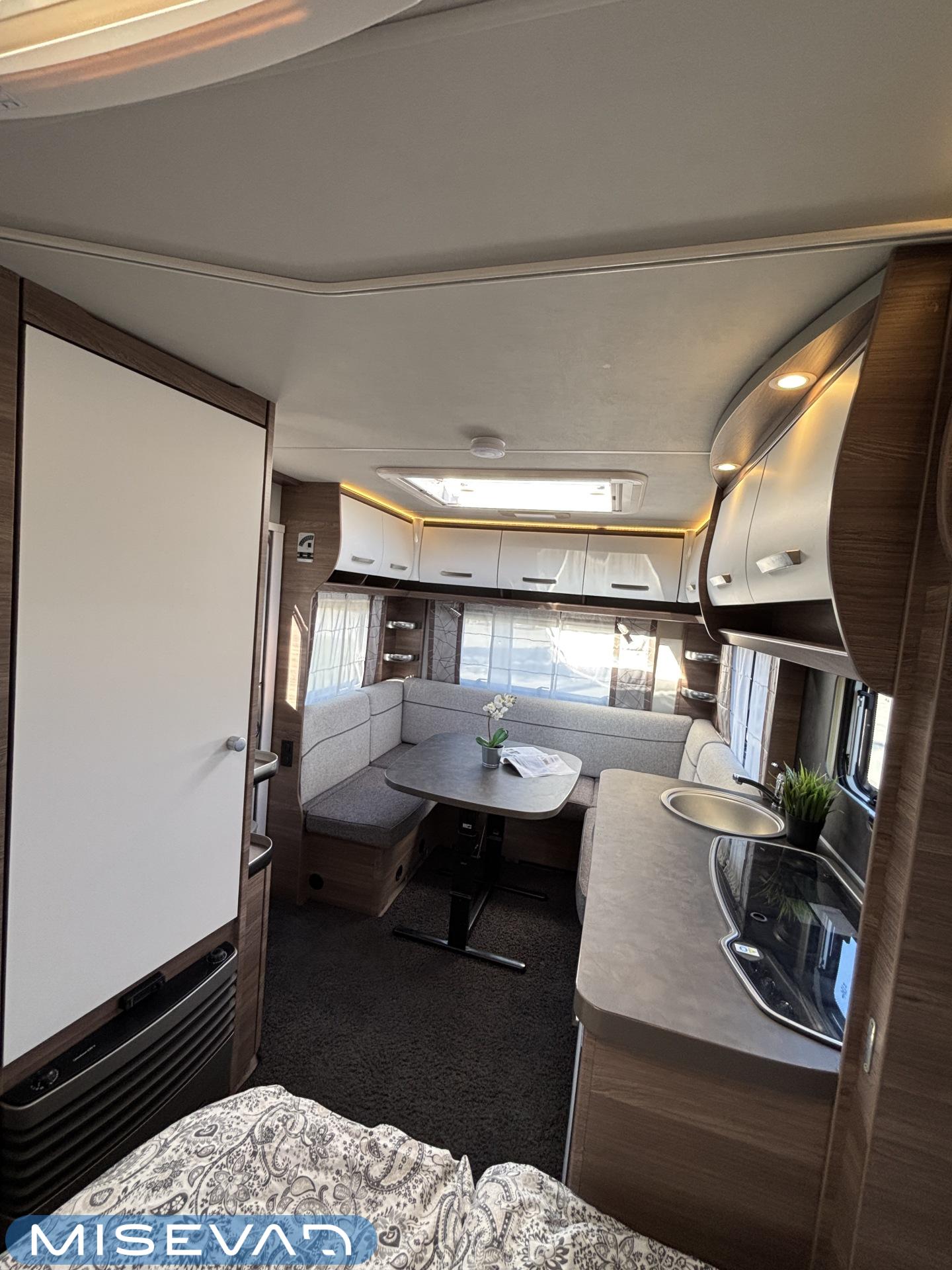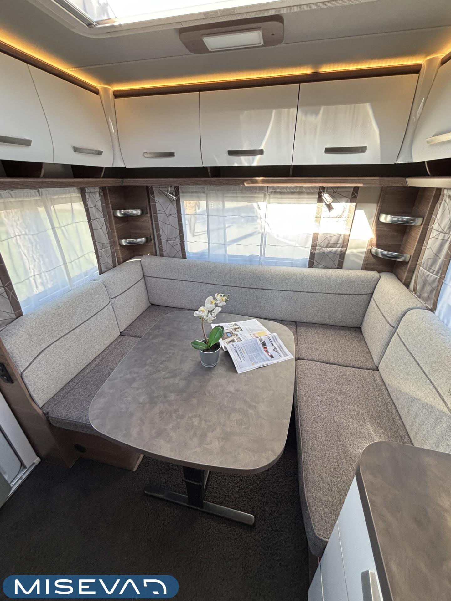 Erillisvuoteet, Kasettiverhot, Kasetti WC, Jääkaappi, Kattoluukku, Ilmastointi: Automaattinen, Lämminvesiboileri, Markiisi, Pesuallas, Pakastelokero, Tukijalat, Trumatic, Lattialämmitys, Sähköpatruuna, Suihku