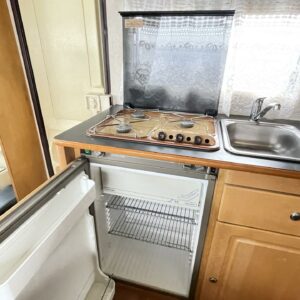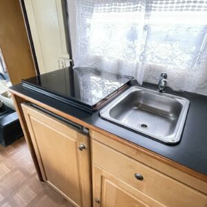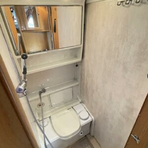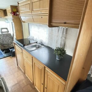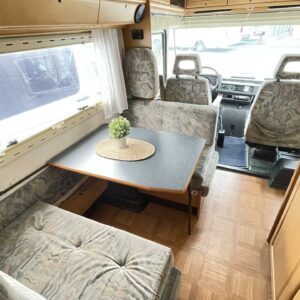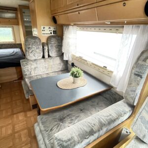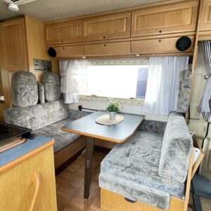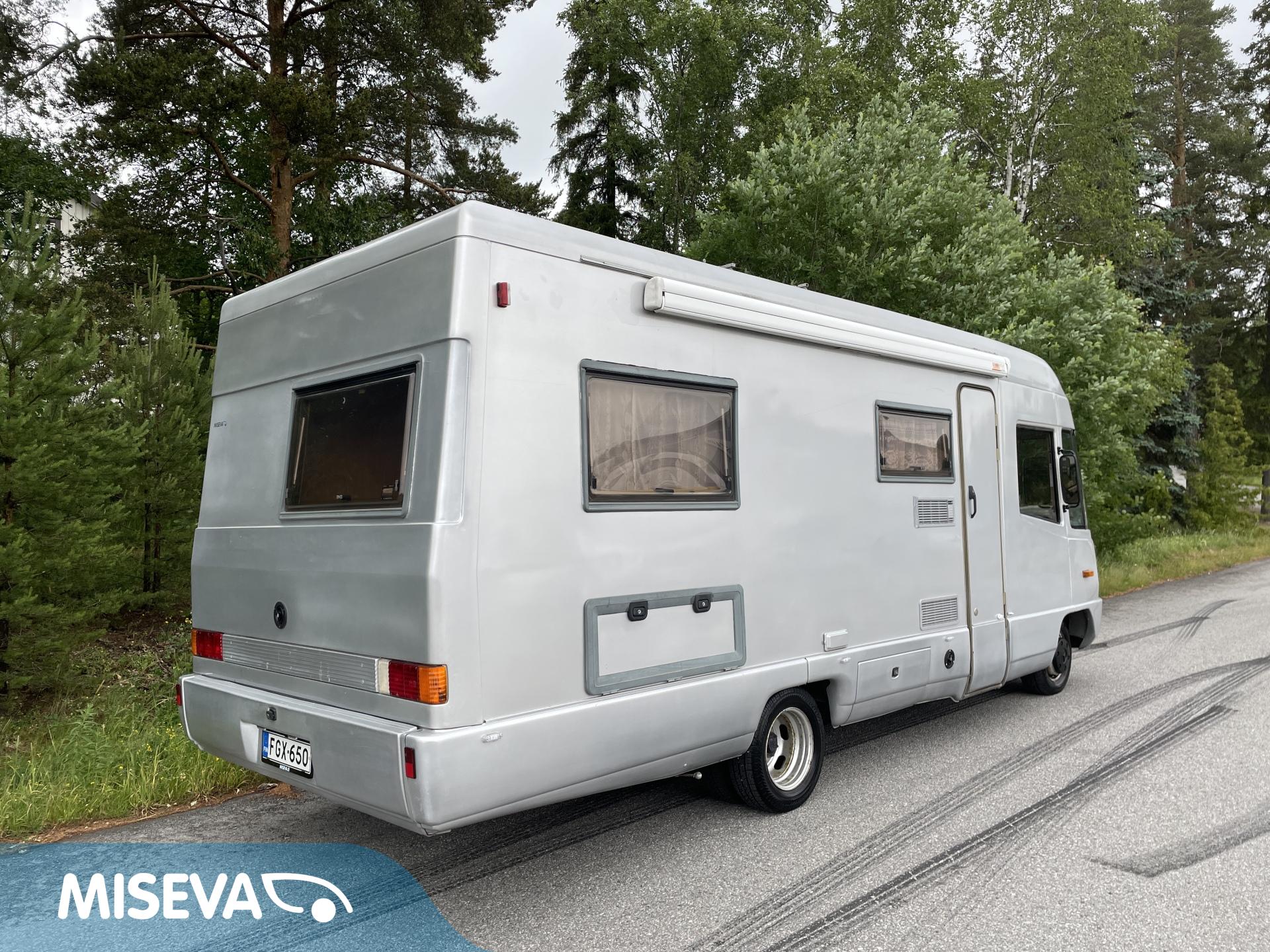 Takana parivuode ja pesuhuone, keskellä keittiö ja istuinryhmä, ohjaamossa yläkaapistoa ja erikoispenkit. Korissa useita säilytysluukkuja. Tästä harvinainen kulkupeli edullisesti suoraan käytöstä. Ei enää uusi mutta toimiva.