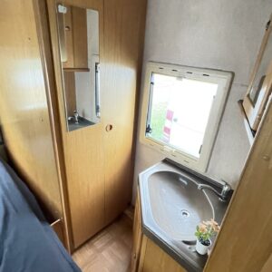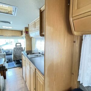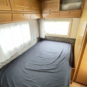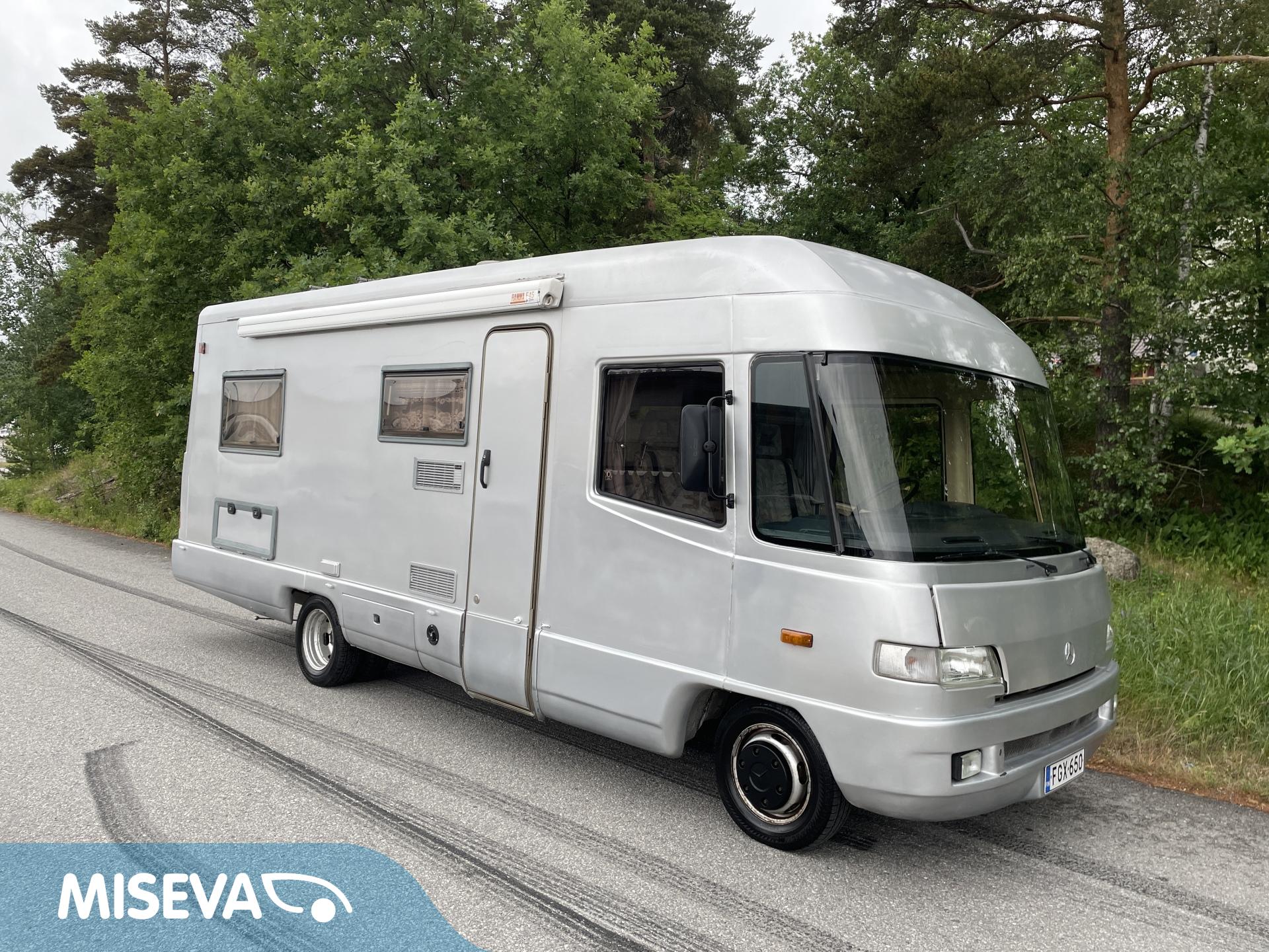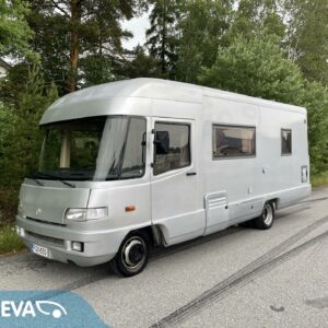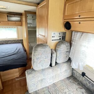 Takana parivuode ja pesuhuone, keskellä keittiö ja istuinryhmä, ohjaamossa yläkaapistoa ja erikoispenkit. Korissa useita säilytysluukkuja. Tästä harvinainen kulkupeli edullisesti suoraan käytöstä. Ei enää uusi mutta toimiva.