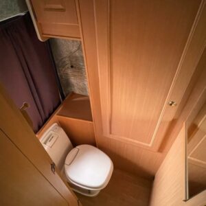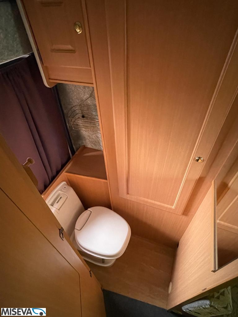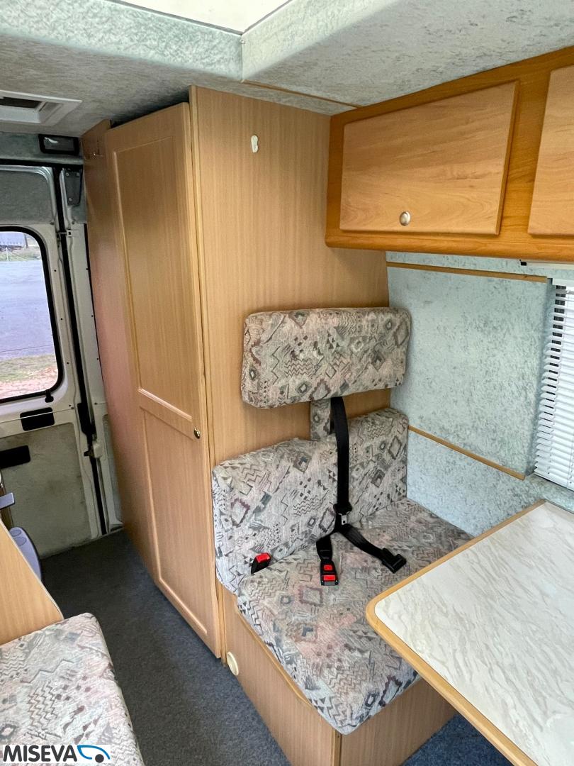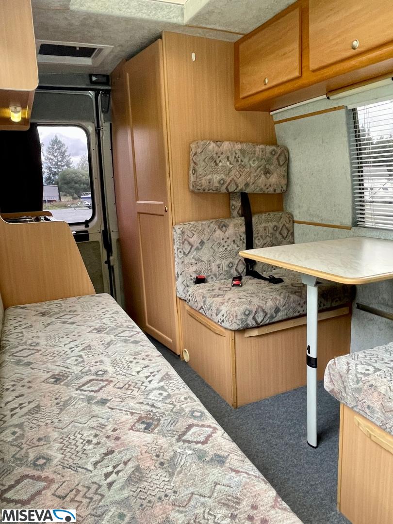 Auton etuosassa pitkä sohva ja vastakkain istuttava pöytäryhmä joka sijattavissa vuoteeksi. Auton takaosasta löytyy keittiö ja WC.