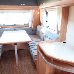 Vaunun etuosassa pöytäryhmä joka sijattavissa leveäksi parivuoteeksi. Vaunun takaosasta löytyy keittiö ja pesuhuone/ WC.