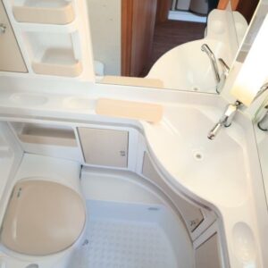 Varusteina mm: Truma- keskuslämmitys sähköpatruunalla, Lattialämmitys, kWh- mittari, TV- antenni, Iso jääkaappi- pakastin,..