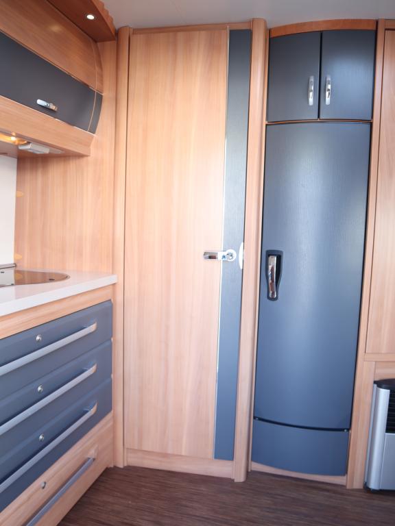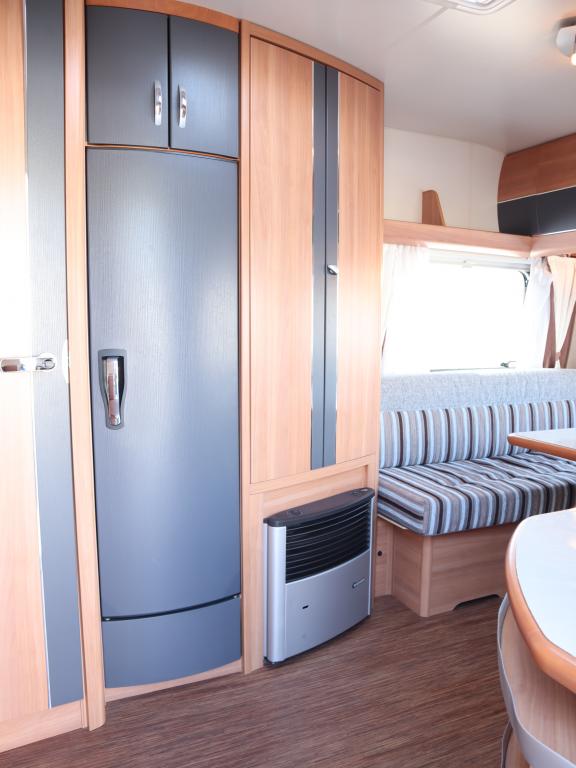 Varusteina mm: Truma- keskuslämmitys sähköpatruunalla, Lattialämmitys, kWh- mittari, TV- antenni, Iso jääkaappi- pakastin,..