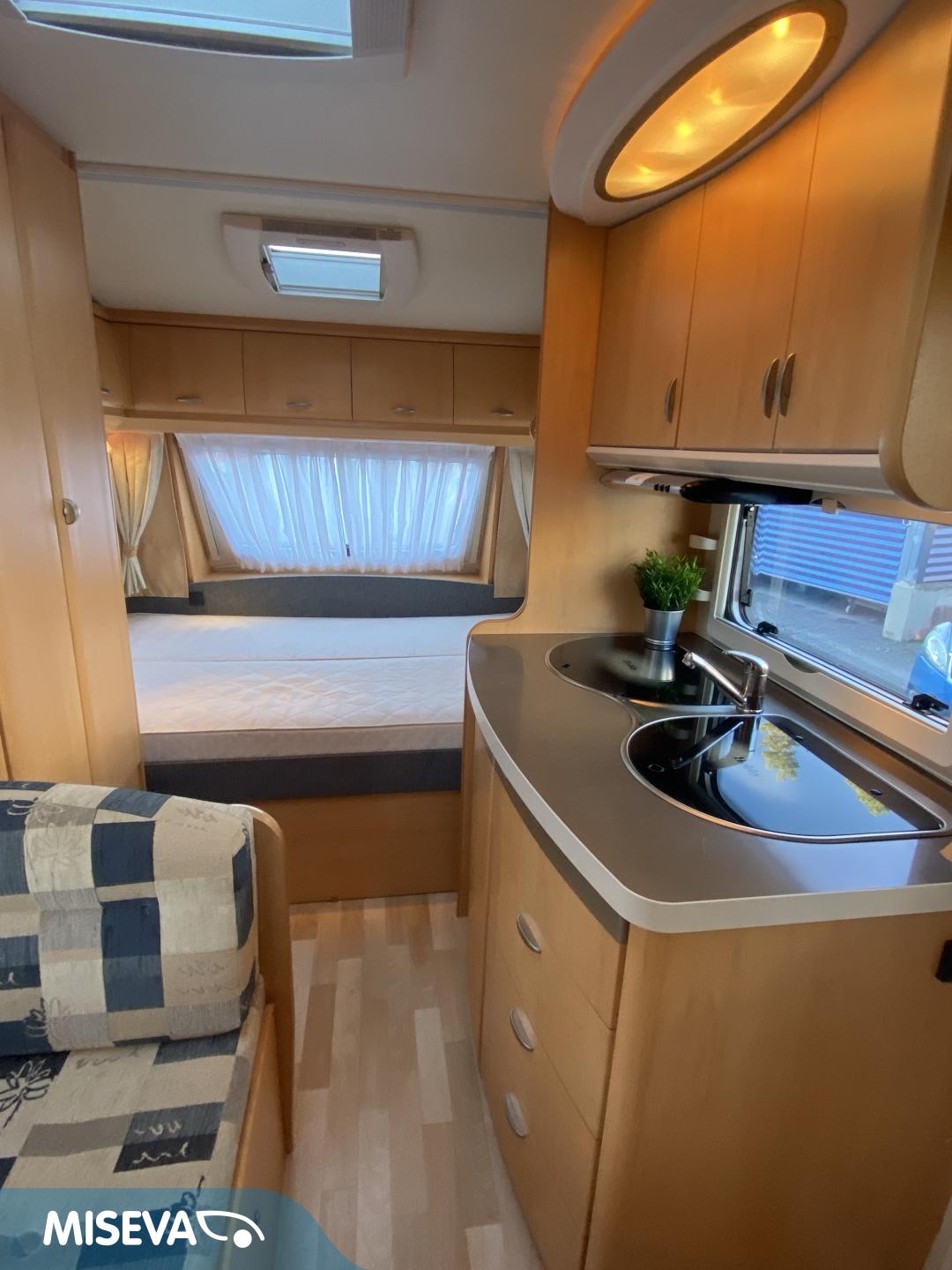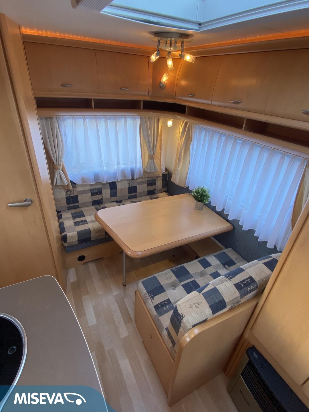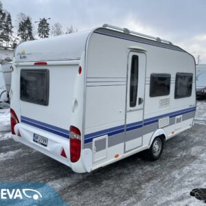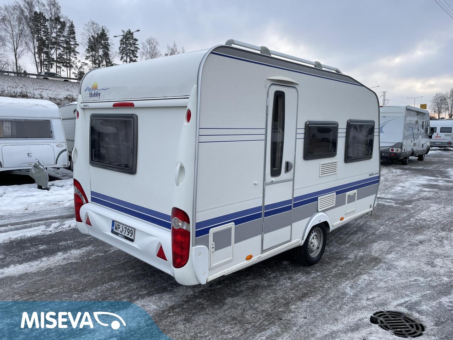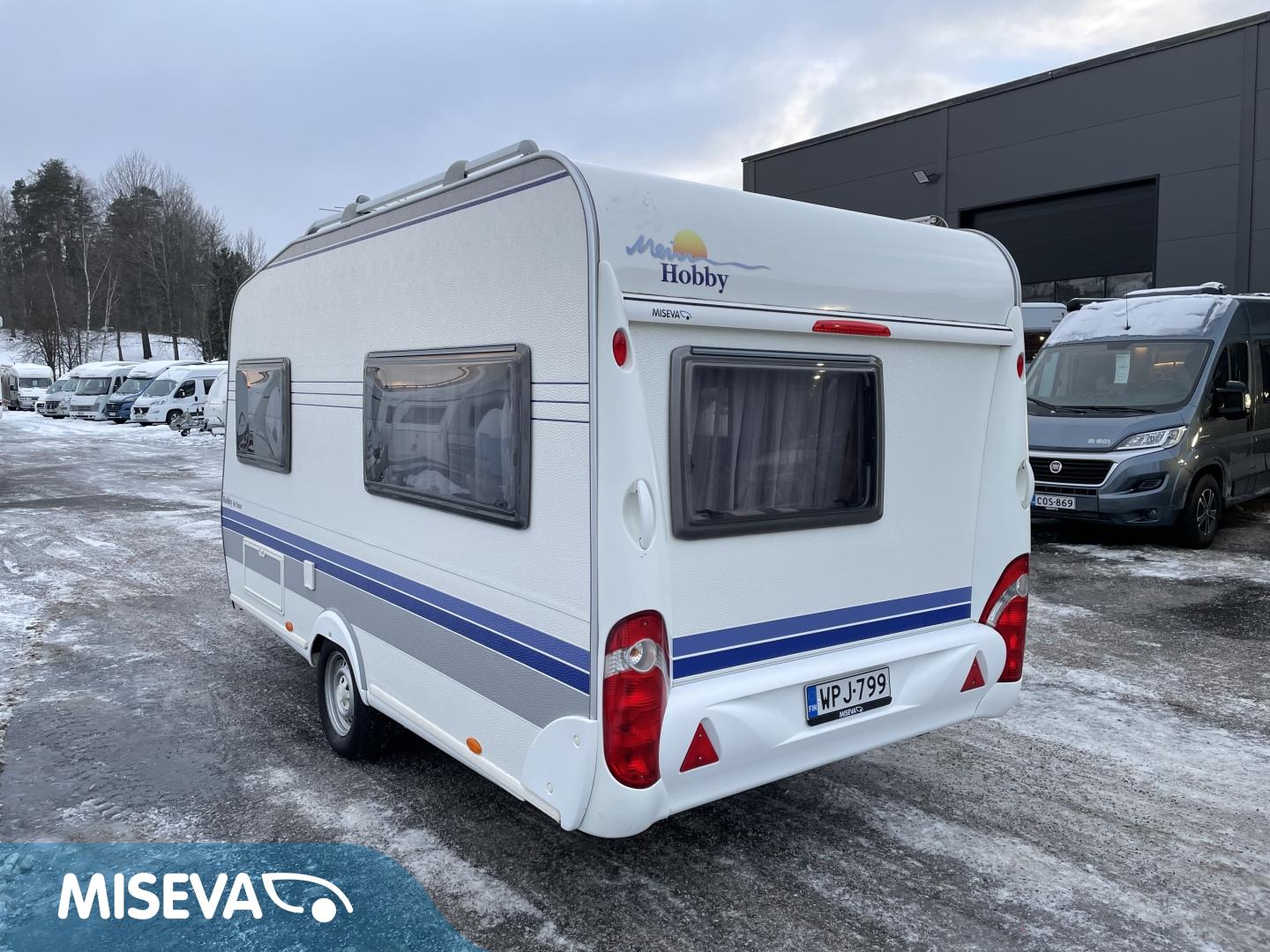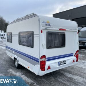 Siisti hobby 400 toimivalla pohjaratkaisulla. Vaunun perässä WC ja sen vieressä pöytäryhmä, keittiö ja vaatekaappi keskellä, keulassa leveä parivuode poikittain,minkä alla säilytystilaa.