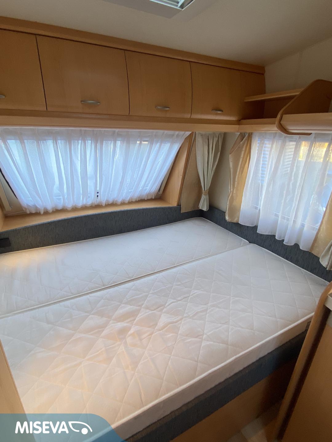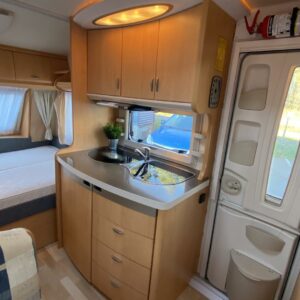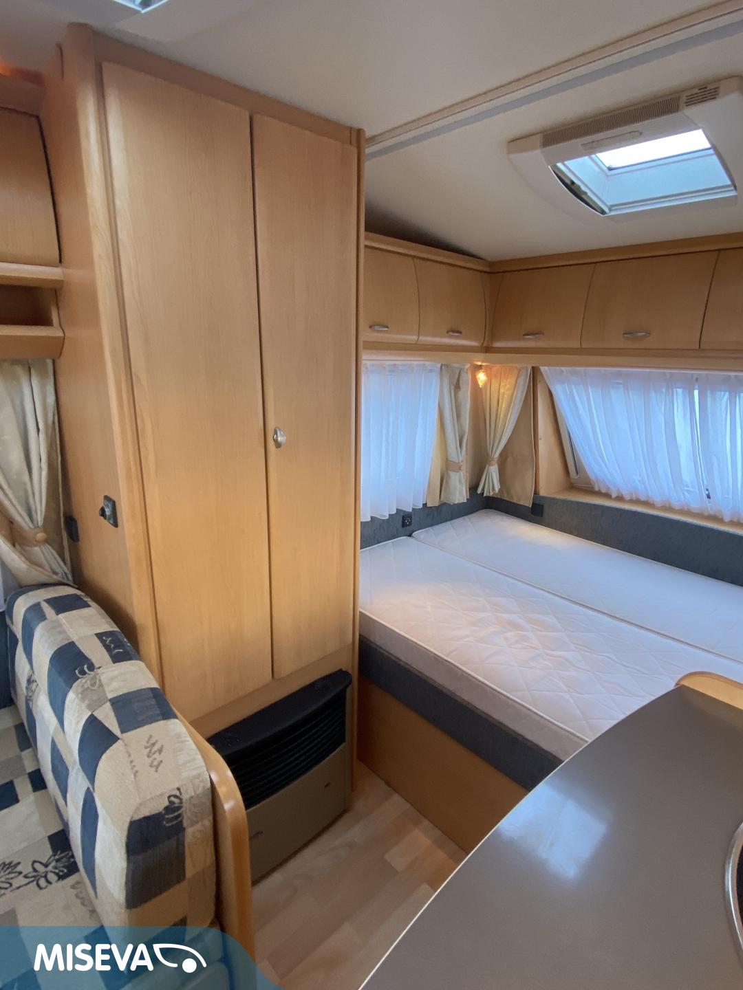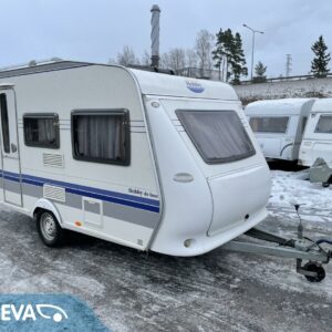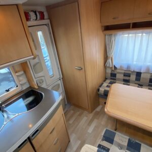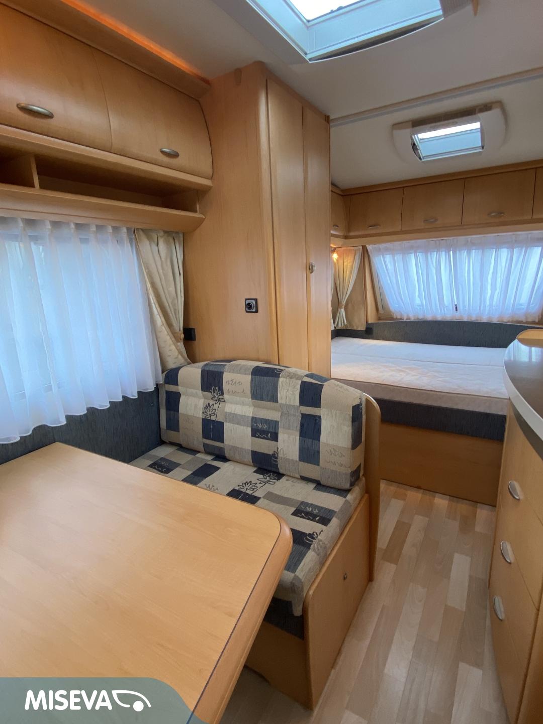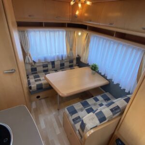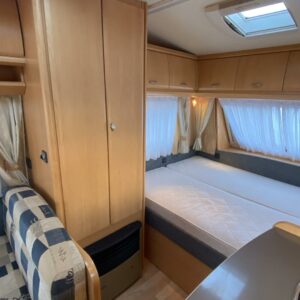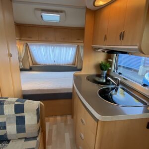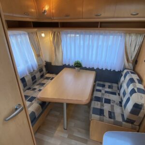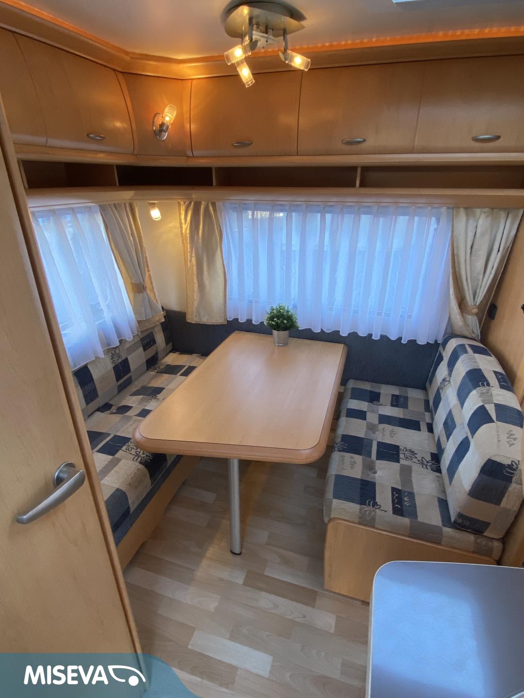Siisti hobby 400 toimivalla pohjaratkaisulla. Vaunun perässä WC ja sen vieressä pöytäryhmä, keittiö ja vaatekaappi keskellä, keulassa leveä parivuode poikittain,minkä alla säilytystilaa.