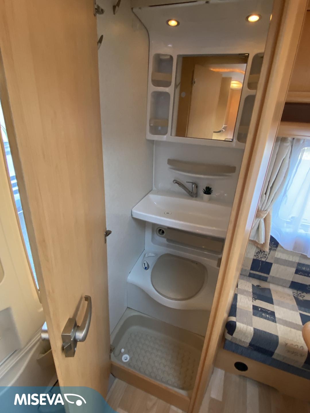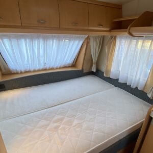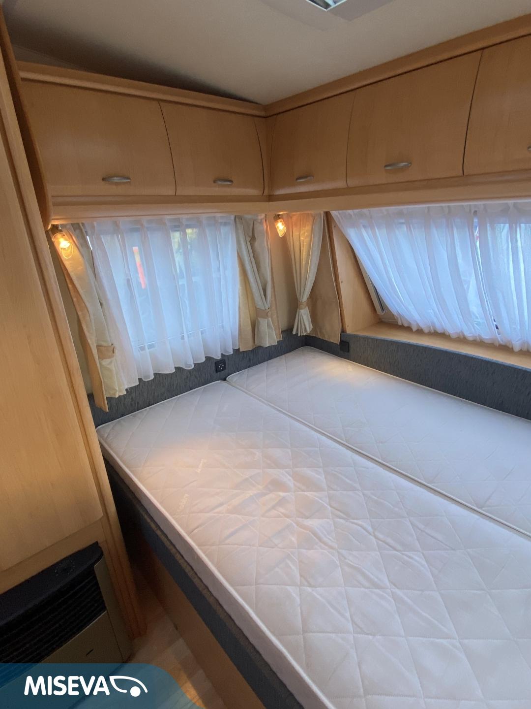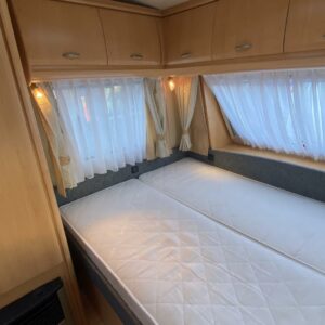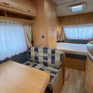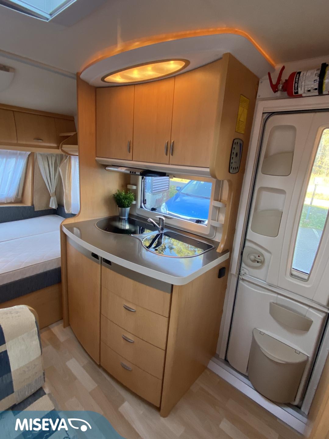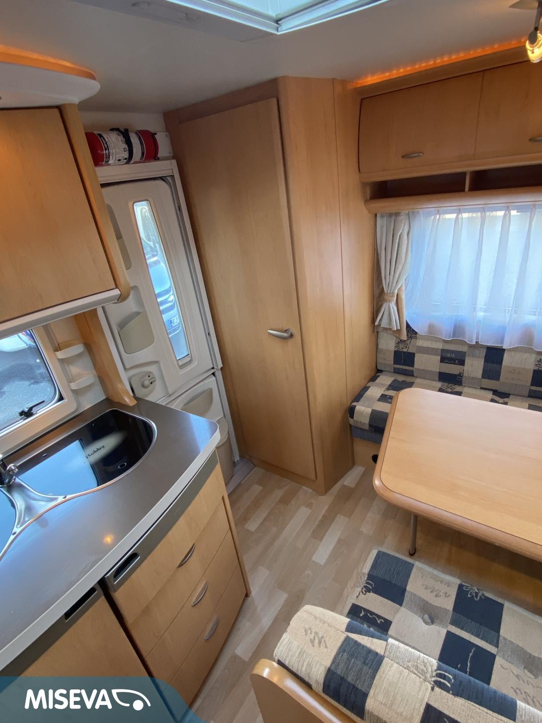 Siisti hobby 400 toimivalla pohjaratkaisulla. Vaunun perässä WC ja sen vieressä pöytäryhmä, keittiö ja vaatekaappi keskellä, keulassa leveä parivuode poikittain,minkä alla säilytystilaa.