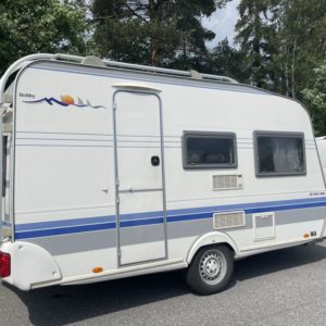Erittäin kevyt (kokonaispaino vain 1 050 kg!) pikku- Hobby kahdella pöytäryhmällä! Molemmat sijattavissa vuoteiksi.