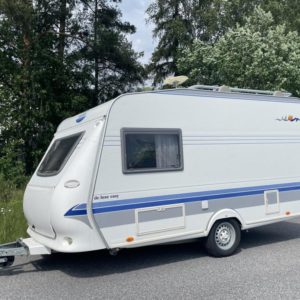 Erittäin kevyt (kokonaispaino vain 1 050 kg!) pikku- Hobby kahdella pöytäryhmällä! Molemmat sijattavissa vuoteiksi.