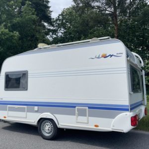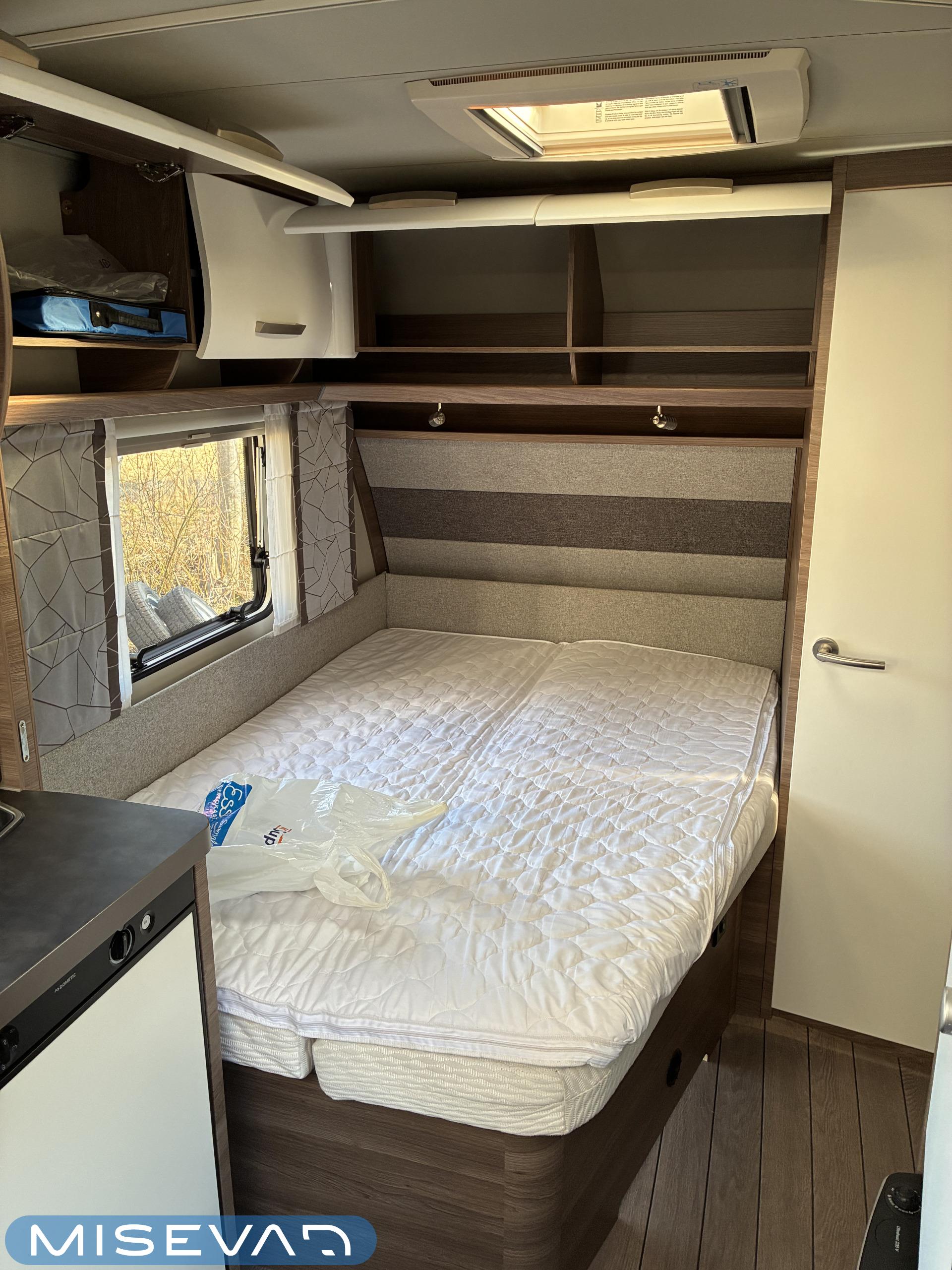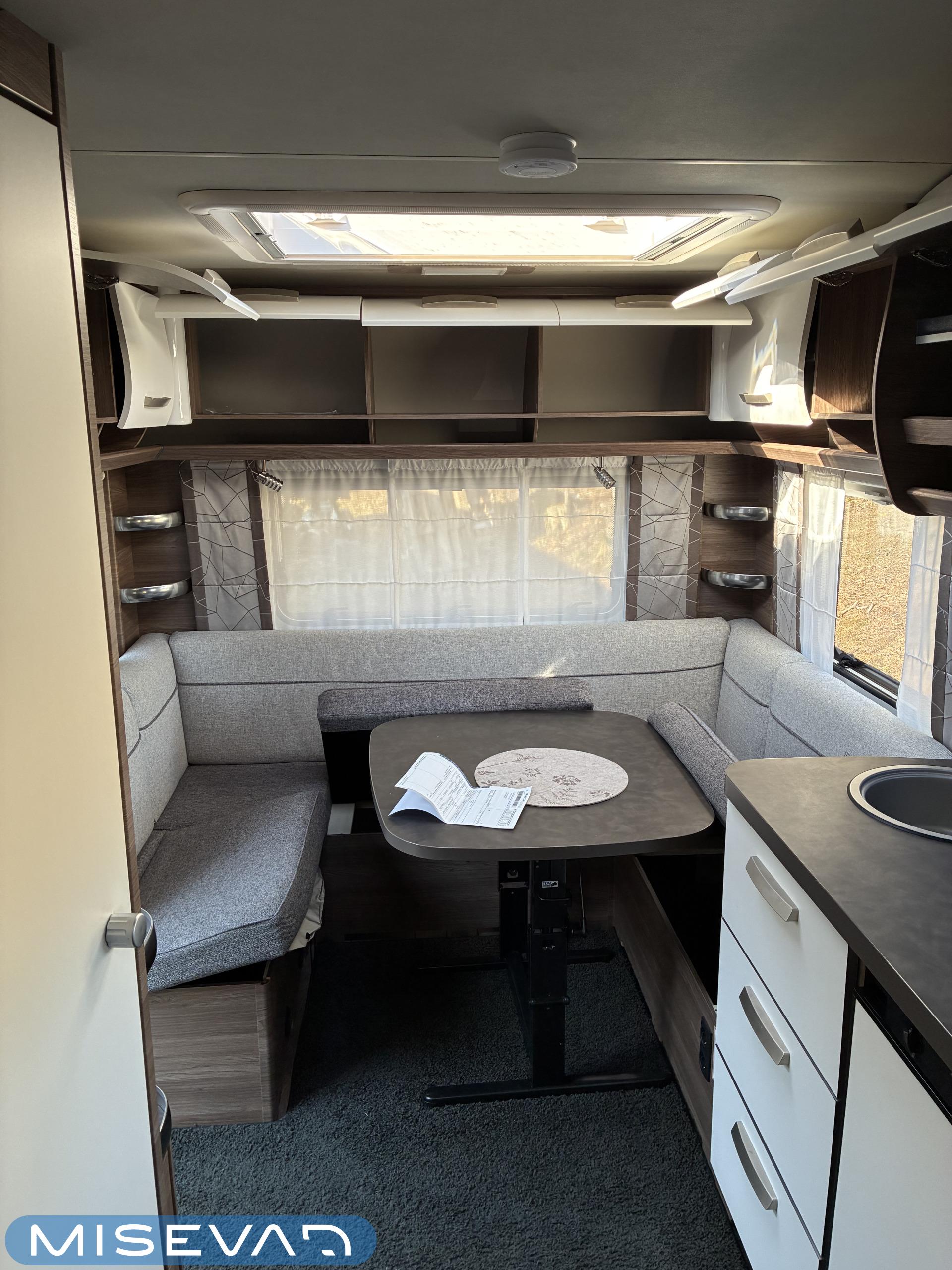Erittäin kevyt (kokonaispaino vain 1 050 kg!) pikku- Hobby kahdella pöytäryhmällä! Molemmat sijattavissa vuoteiksi.