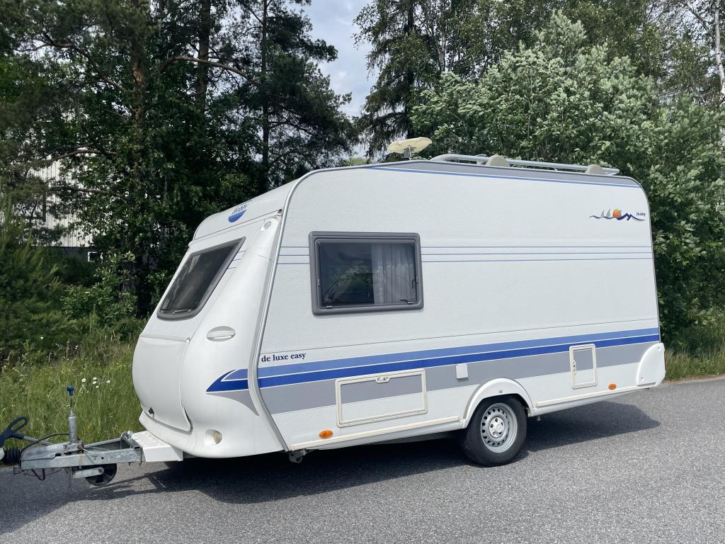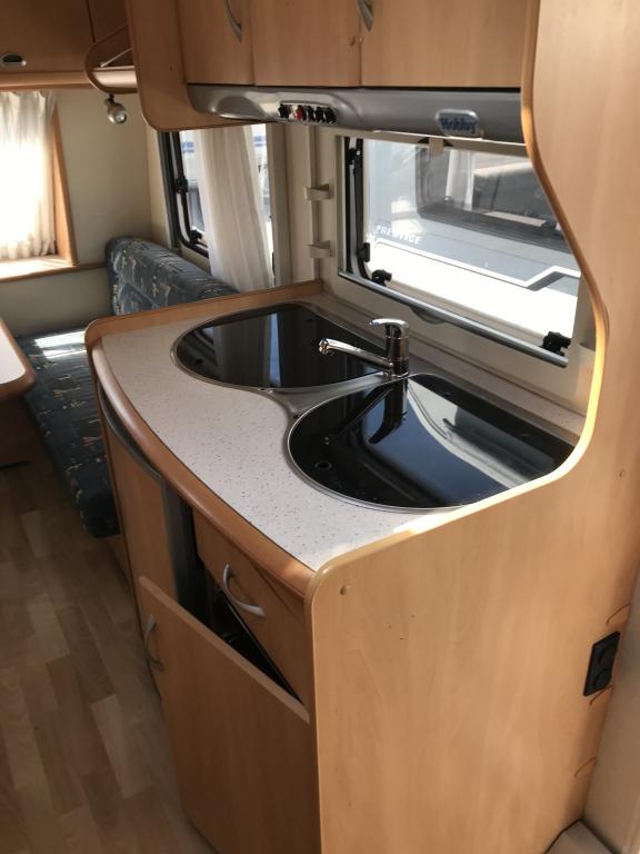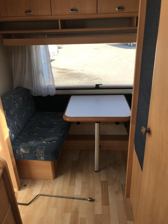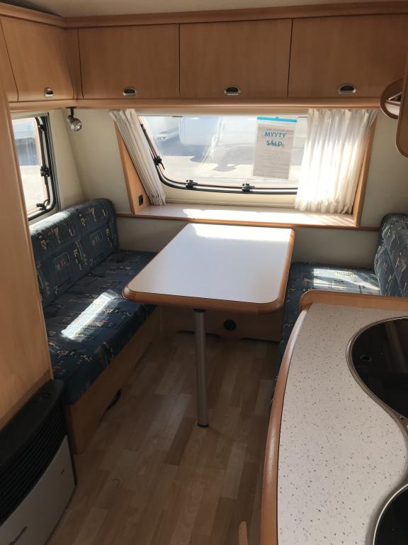 Erittäin kevyt (kokonaispaino vain 1 050 kg!) pikku- Hobby kahdella pöytäryhmällä! Molemmat sijattavissa vuoteiksi.