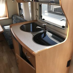 Erittäin kevyt (kokonaispaino vain 1 050 kg!) pikku- Hobby kahdella pöytäryhmällä! Molemmat sijattavissa vuoteiksi.