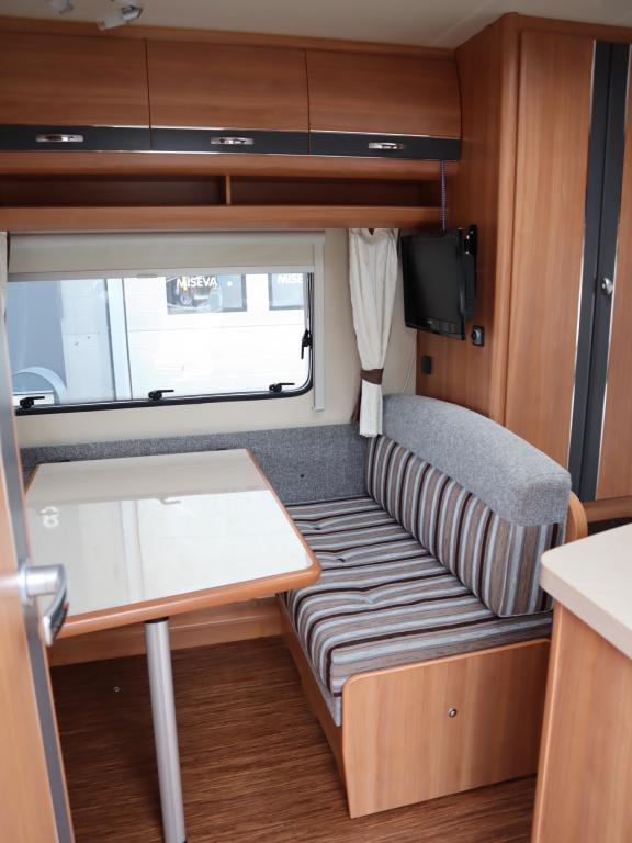 Siisti Hobby 400. Vaunussa takana wc ja sen vieressä pöytäryhmä. Keskellä vaatekaappi sekä vastapäätä keittiö. Keulassa iso parivuode poikittain.Kompakti ja toimiva pohjaratkaisu.