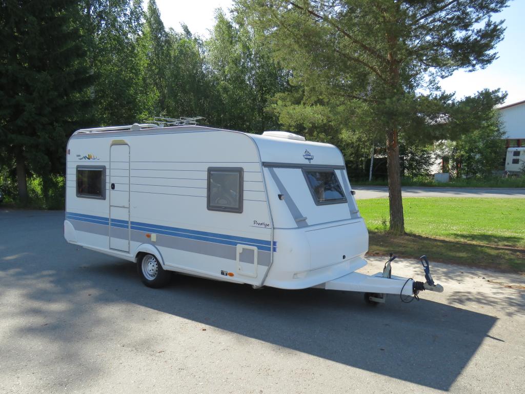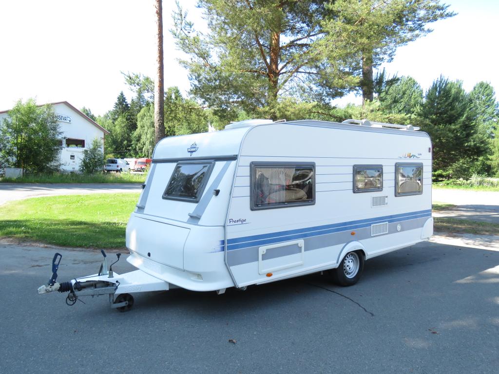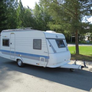 Varusteina mm: Truma- keskuslämmitys sähköpatruunalla, Etuteltta, TV- antenni,..