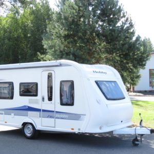 Varusteina mm: Truma- keskuslämmitys sähköpatruunalla, Pussimarkiisi, kWh- mittari, TV- antenni,..