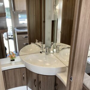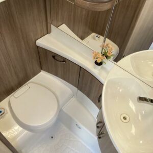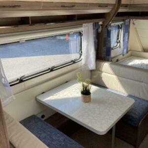 Kasetti WC, Kasettiverhot, Kerrossänky, Lattiamatot asunto-osassa, Liesi, Lämminvesiboileri, Parivuode, Sähköpatruuna, TV-antenni tai lautasantenni, Tukijalat, Truma, Lattialämmitys (sähkö), jenkkijääkaappi, liesituuletin, televisioteline, Asuinosan hyttysovi/verho, Jääkaappi, Kattoluukku, Lattialämmitys, Pesuallas