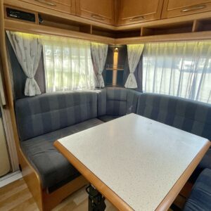 Siistissä kunnossa oleva Hobbyn pieni vaunu, jossa havaittu kohonneita kosteusarvoja.