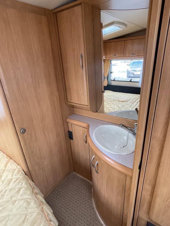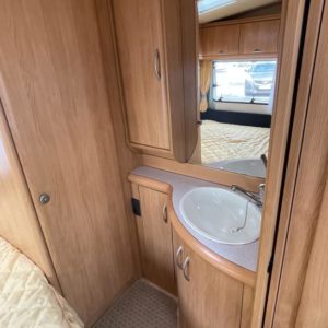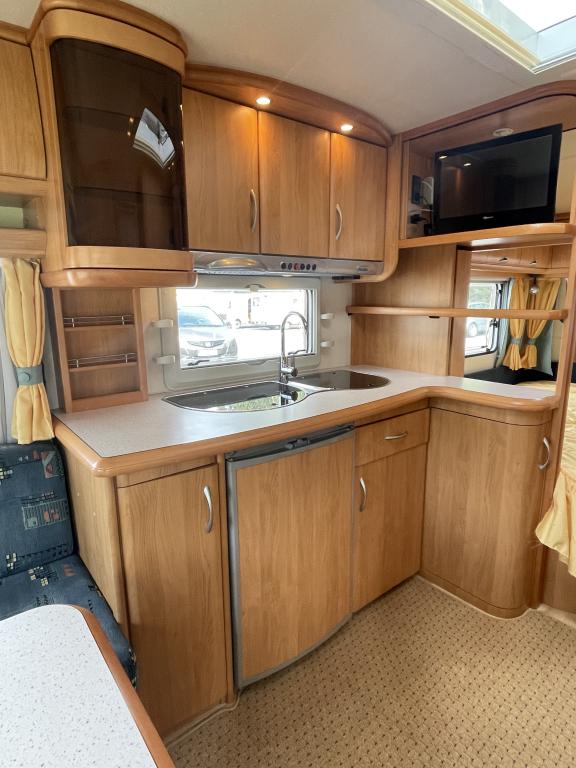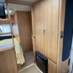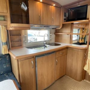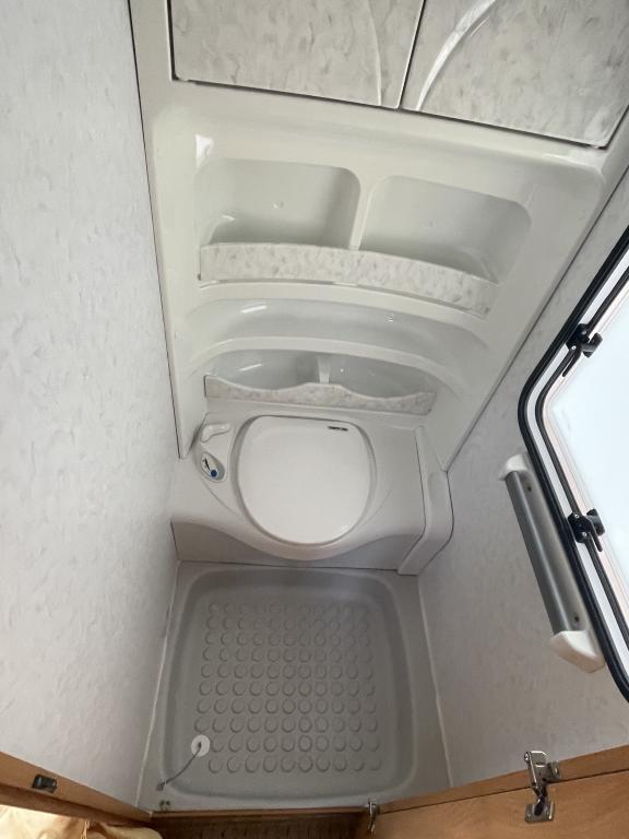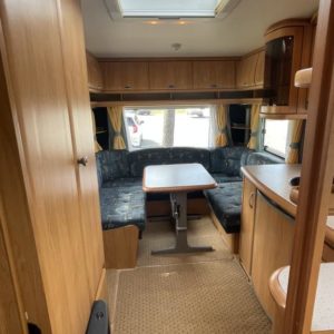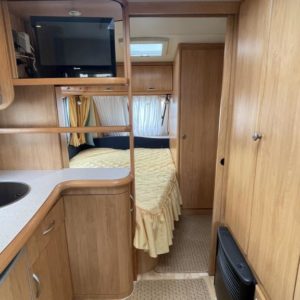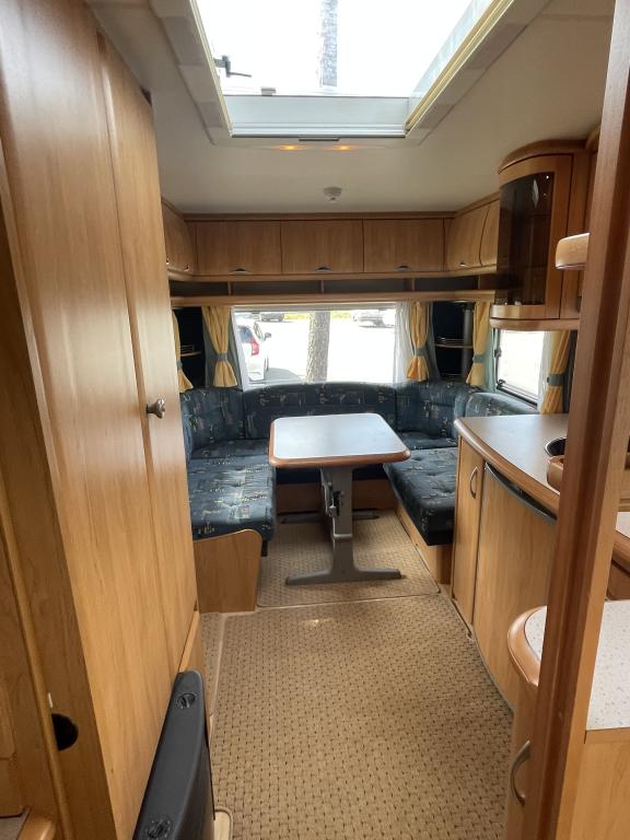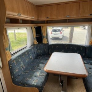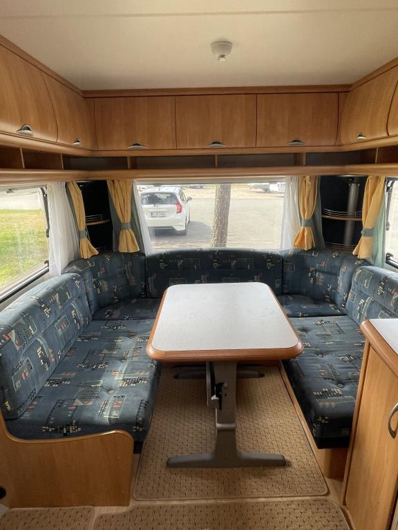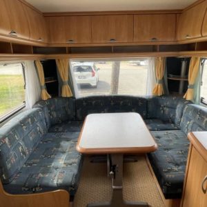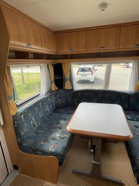 Pohjaratkaisussa takana U- Sohvaryhmä joka pedattavissa vuoteeksi. Keskiosassa keittiö sekä kaappitilaa. Etuosassa pitkittäinen parivuode jonka alla säilytystilaa sekä Wc & Suihkutila.