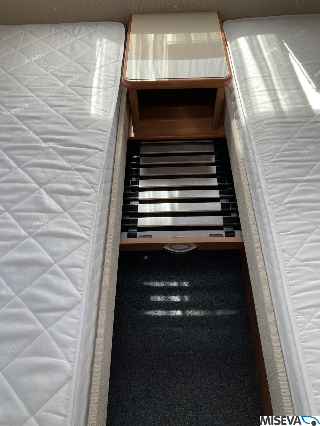 Alde, Erillisvuoteet, Jääkaappi, Kasetti WC, Kasettiverhot, Lattialämmitys, Lattiamatot asunto-osassa, Liesi, Lämminvesiboileri, Nestekiertolämmitys, Sähköpatruuna, Tukijalat, TV-antenni/lautasantenni