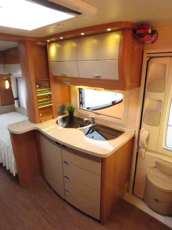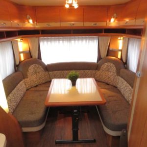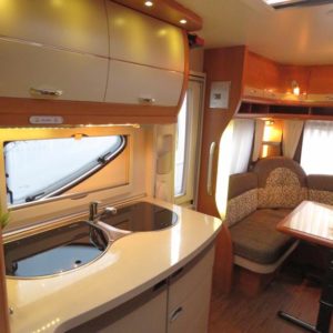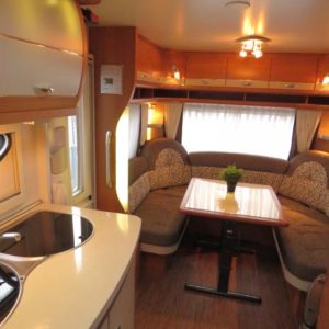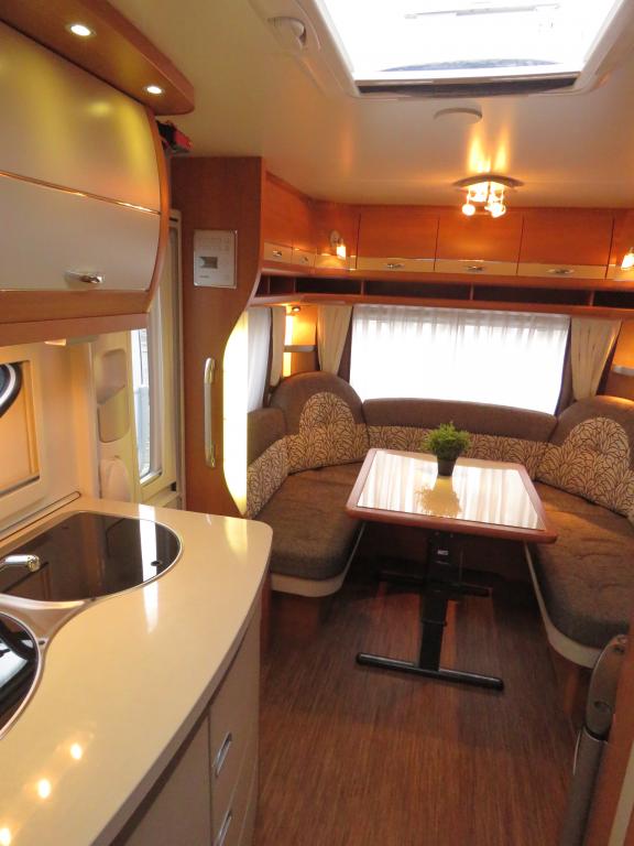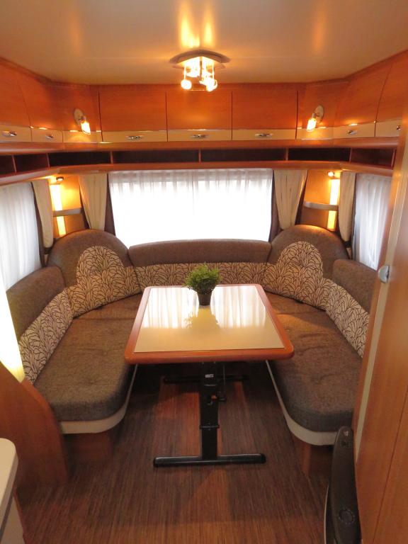 Varusteina mm: Truma- keskuslämmitys sähköpatruunalla, Lattialämmitys, Pussimarkiisi,..