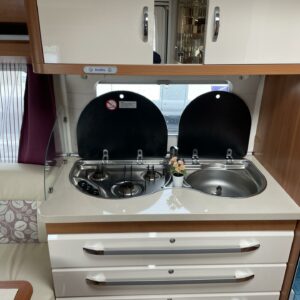 Alde, Etuteltta, Jääkaappi, Kasetti WC, Kasettiverhot, Kattoluukku, Keskuslukitus, Lattialämmitys, Liesi, Lämminvesiboileri, Nestekiertolämmitys, Pakastelokero, Parivuode, Pesuallas, Suihku, Sähköpatruuna, Tukijalat, TV-antenni/lautasantenni, Lattialämmitys (sähkö), jenkkijääkaappi, sähkön ulosotto, televisioteline, Asuinosan hyttysovi/verho