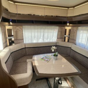 Vaunun takapäässä on viihtyisä U- ryhmä, joka on tarpeen vaatiessa sijattavissa lisävuoteeksi.