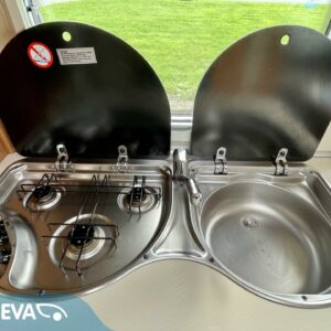 Erillisvuoteet, Kasettiverhot, Kasetti WC, Jääkaappi, Kattoluukku, Lattialämmitys, Liesi, Lämminvesiboileri, Pesuallas, Pakastelokero, Sähköpatruuna, Trumatic, Tukijalat, Lattiamatot asunto-osassa, kwh-mittari, Markiisi