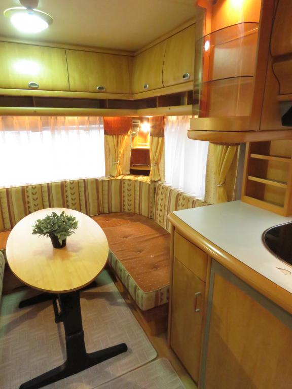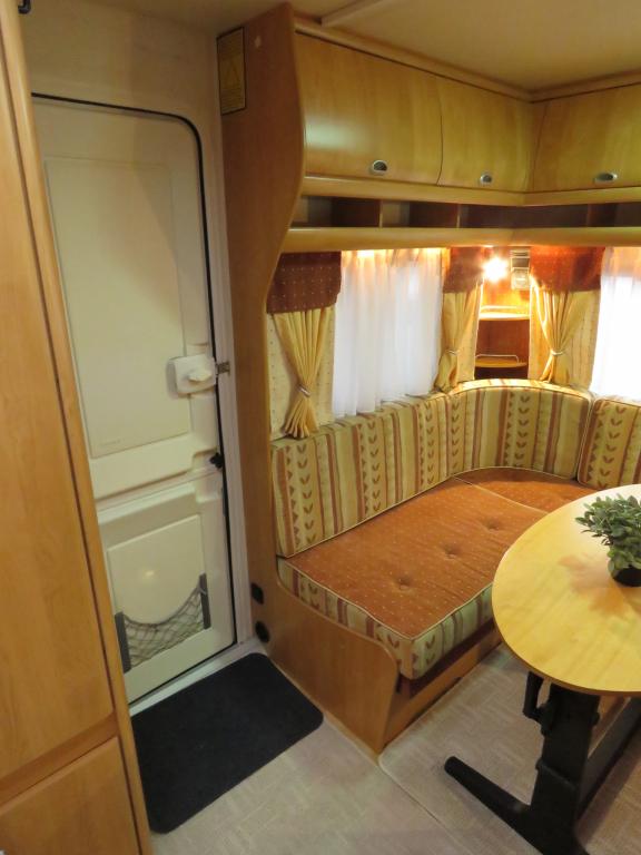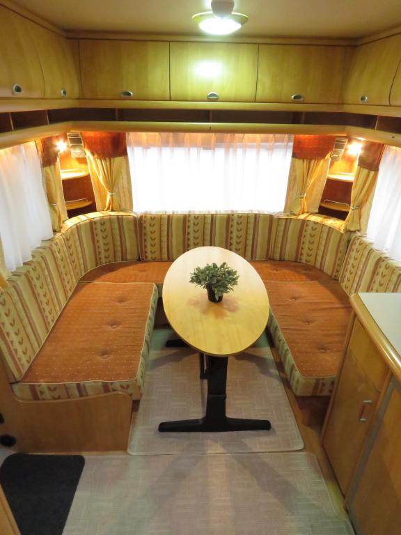 Vaunun etuosassa pitkittäinen parivuode ja pesuhuone, takaosassa viihtyisä U- ryhmä.