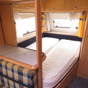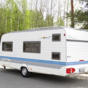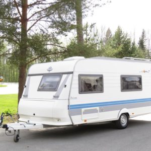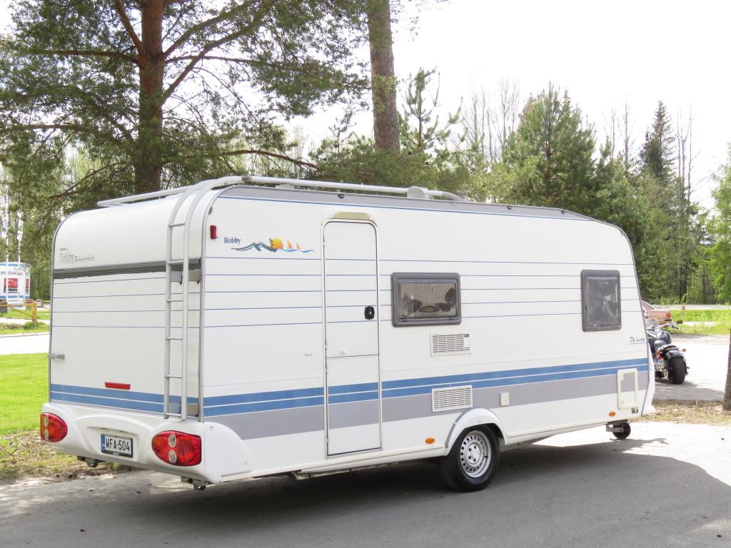 Kevyt, kokonaispainoltaan vain 1 400- kiloinen Hobby jossa kiinteät vuoteet neljälle. Juuri katsastettu!