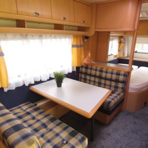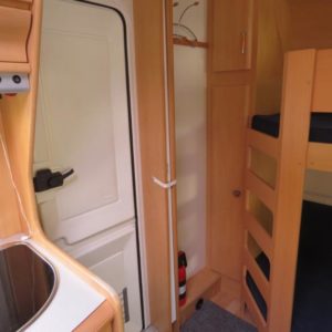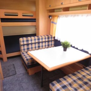 Vaunun etuosassa parivuode ja pesuhuone, takana kerrosvuoteet. Vaunun keskeltä löytyy pöytäryhmä joka tarvittaessa sijattavissa toiseksi parivuoteeksi.