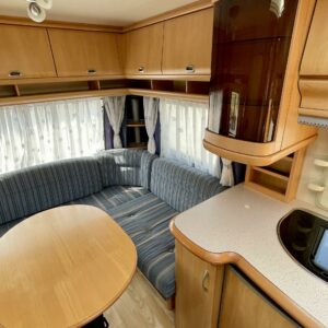 Erillisvuoteet, Kasettiverhot, Kasetti WC, Jääkaappi, Kattoluukku, Liesi, Lämminvesiboileri, Pesuallas, Nestekiertolämmitys, Sähköpatruuna, TV-antenni tai lautasantenni, Alde, Pakastelokero, Trumatic, Tukijalat
