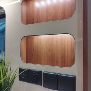 Aurinkopaneeli, Jääkaappi, Kasetti WC, Kasettiverhot, Kattoluukku, Lattialämmitys, Lattiamatot asunto-osassa, Liesi, Lämminvesiboileri, Markiisi, Pakastelokero, Parivuode, Pesuallas, Pyöräteline, Sähköpatruuna, TV-antenni tai lautasantenni, Trumatic, Tukijalat, Lattialämmitys (sähkö), Kesärenkaat, liesituuletin, sähkön ulosotto