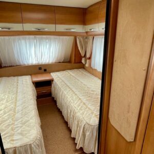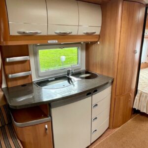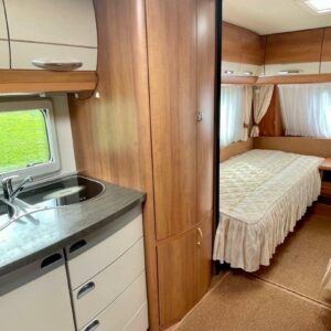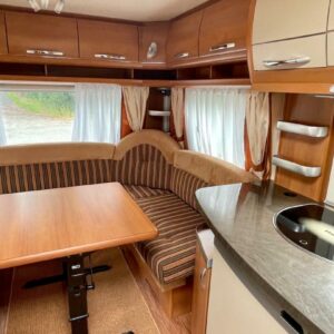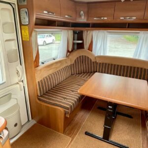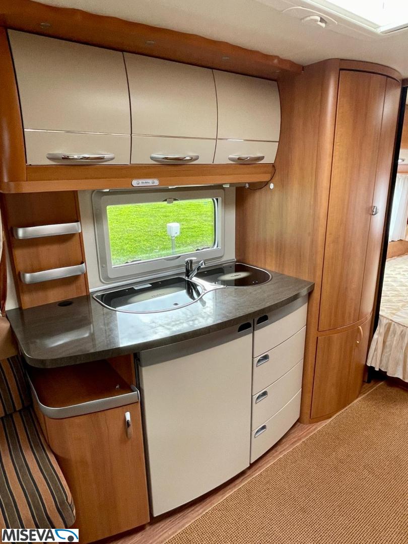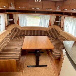 Hienossa kunnossa oleva vaunu! Ei lommoja, kolhuja ym. kulumisen merkkejä havaittavissa. Sisältäkin puhdas ja ehjä, ei repsottavia paikkoja. Sisätiloiltaan vaunu on viihtyisä ja valoisa. Lämmitys tapahtuu mukavan ja tasaisen lämmön antavalla Alden vesikeskuslämmityksellä. Mukavuusvarusteena löytyy lisäksi sähköinen lattianlämmitys. Keittiössä perusvarustus, eli jääkaappi pakastinlokerolla, liesi sekä pesuallas. Ja myös lämminvesiboileri löytyy varustelistalta.