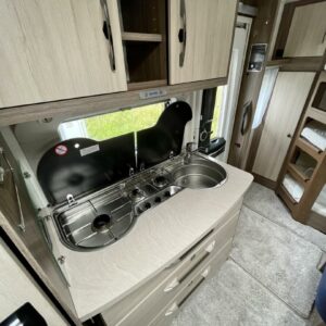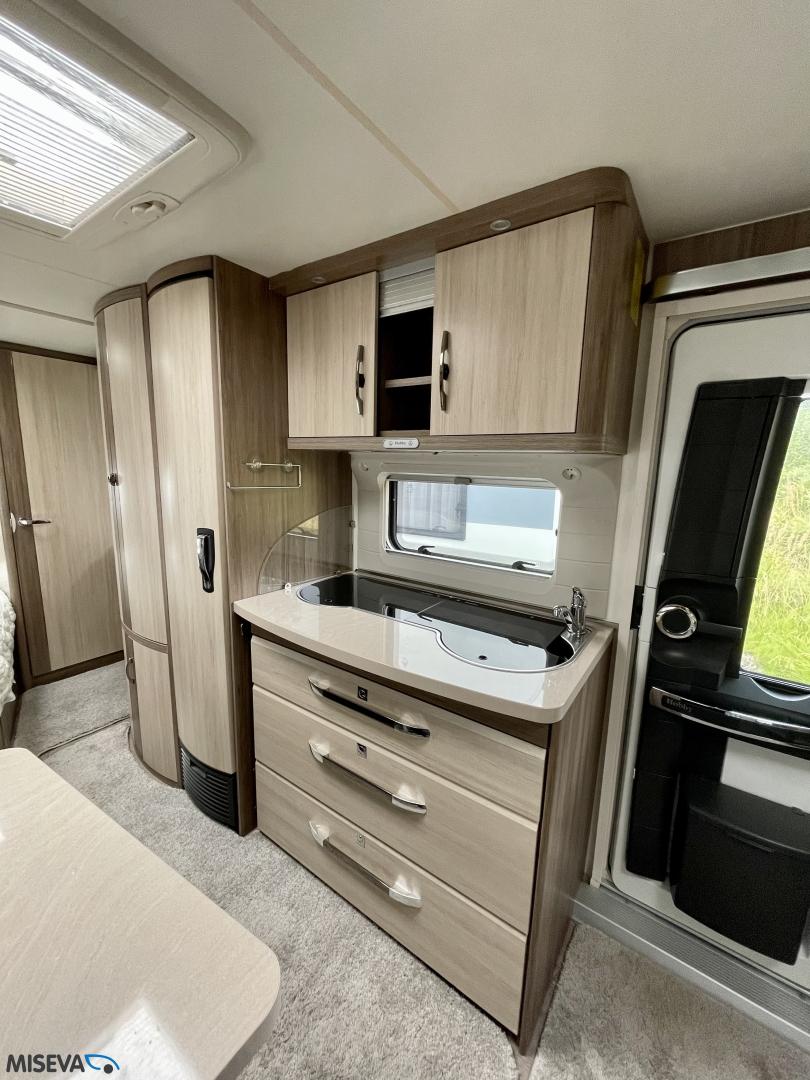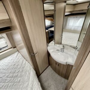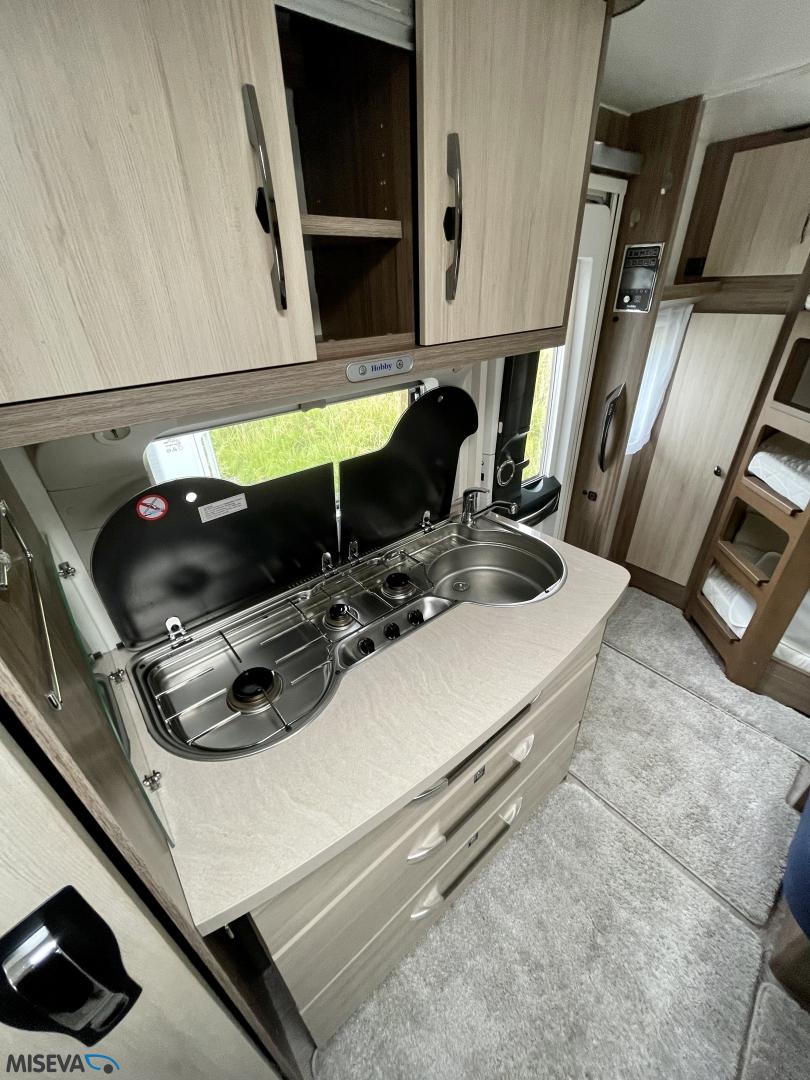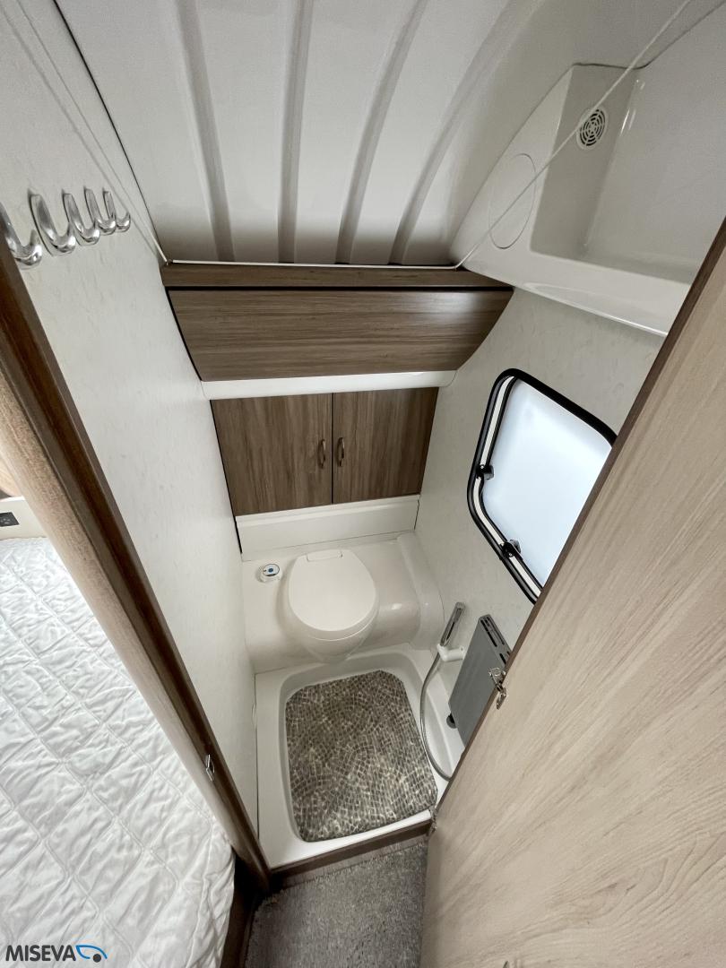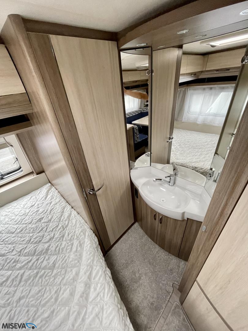 Alde, Jääkaappi, Kerrossänky, Lattiamatot asunto-osassa, Liesi, Lämminvesiboileri, Markiisi, Nestekiertolämmitys, Pakastelokero, Parivuode, Pesuallas, Pyöräteline, Suihku, Sähköpatruuna, TV-antenni tai lautasantenni