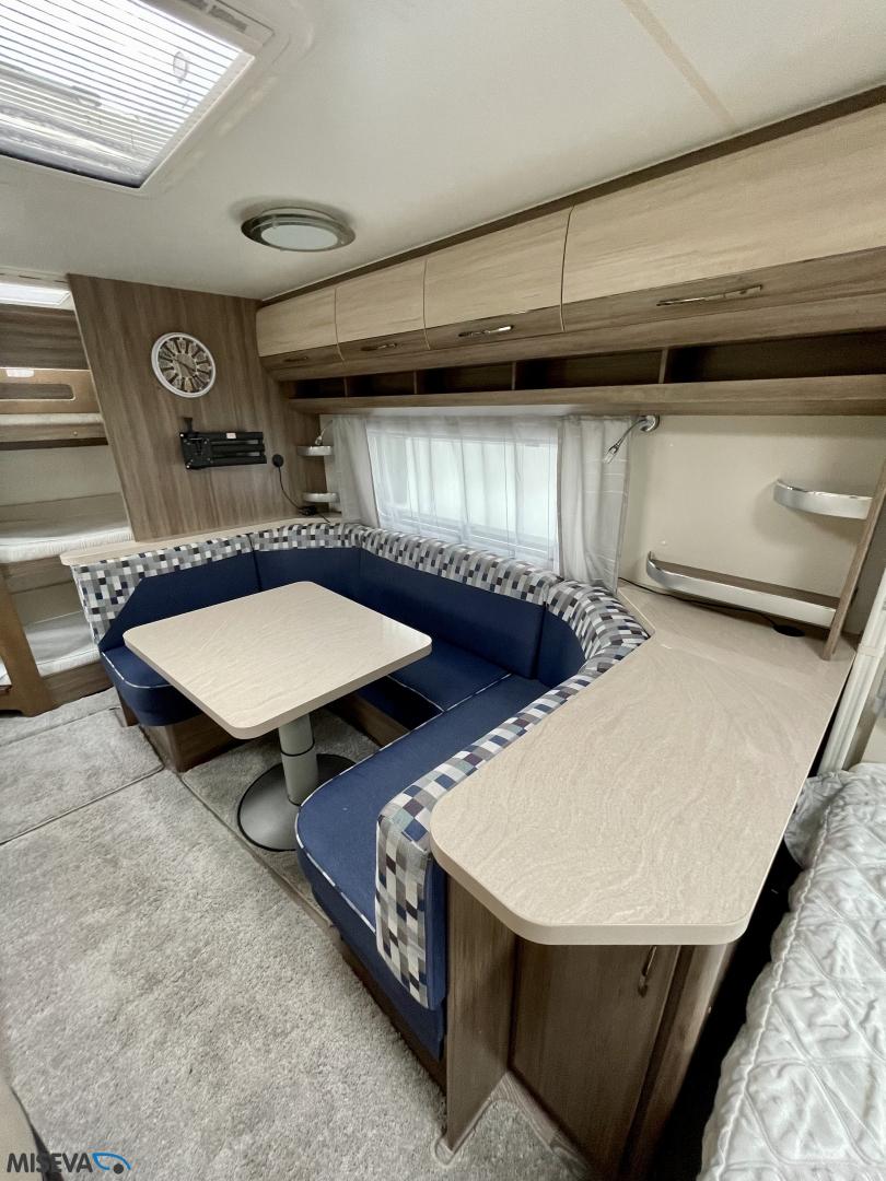 Varusteina mm: Alde nestekiertolämmitys, Liesituuletin, Kerrosvuode, Markiisi, Polkupyöräteline…