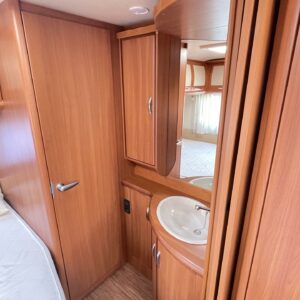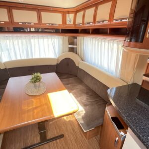 Alde, Jääkaappi, Kasetti WC, Kasettiverhot, Kattoluukku, Liesi, Lämminvesiboileri, Nestekiertolämmitys, Pakastelokero, Parivuode, Pesuallas, Sähköpatruuna, Tukijalat, Lattialämmitys (sähkö), kwh-mittari, sähkön ulosotto, TV-antenni tai lautasantenni, Lattialämmitys