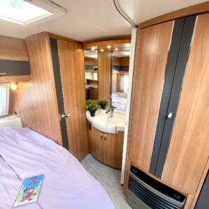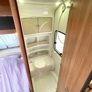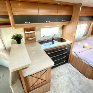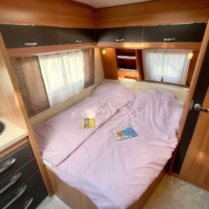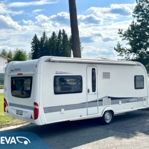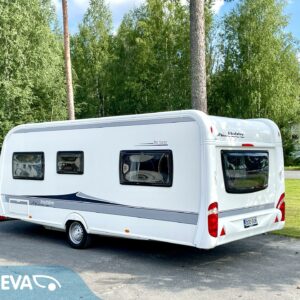 Huisin magee Hobby! Tässä vaunussa takaosaa hallitsee niin sanottu G-sohvaryhmä mikä mahdollistaa isommankin ringin istumaan iltaa pöydän ympärille. L-keittiön ja sohvaryhmän väliin jää ”baaritaso” minkä kautta tarjoilut pöydän puolelle onnistuvat mukavasti. Tilavassa L-keittiössä on paljon laskutilaa tavaroille ja sieltä löytyy myös iso jääkaappi, sekä tietysti normaali matkailuvaunun keittiövarustus. Vaunun etuosaan on sijoitettu pitkittäinen parivuode ja sen alapuolelta löytyy runsaasti säilytystilaa. Tämä säilytystila saadaan hyödynnettyä myös ulos sijoitetun lastausluukun kautta. Edestä toiselta sivulta löytyvät WC/kylpyhuonetilat. Lämmitysjärjestelmänä on Trumaticin ilmakeskuslämmitys ja mukavuusvarusteena ah niin ihana sähköinen lattianlämmitys. Vaunussa on myös koko seinän mittainen markiisi millä oleskelutila laajenee tuplasti pihan puolelle. Oikein siistin kunnon omaava vaunu. Katsastuskin voimassa vuoden 2024 loppuun asti.