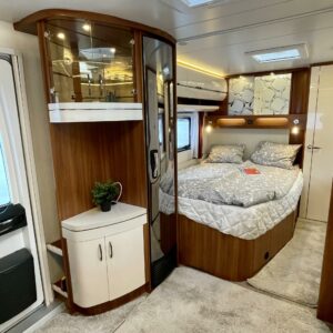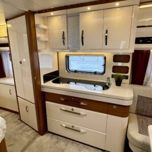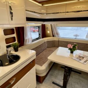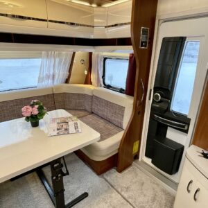 Todella tyylikäs Excellent- sarjan Hobby 1. omistajalta. 2,5 m kokonaisleveys tuo tiloihin avaruutta.