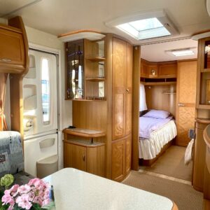 Hyvin siisti ja edustava vaunu, joko jatkuvaan liikkeellä oloon, tai asemapaikalle pysäköitynä. Vaunu on varsin ilmavan oloinen hyvän pohjaratkaisunsa ansiosta. Vaunun etuosassa on tilava istuinryhmä jopa kuudelle henkilölle. Keskiosassa keittiö, missä reilusti lasku- ja kaappitilaa ja varusteina mm. integroitu mikroaaltouuni. Takaosassa sijaitsee omana osastonaan makuuhuone erillisine vuoteineen, sekä koko vaunun levyinen kylpyhuone.