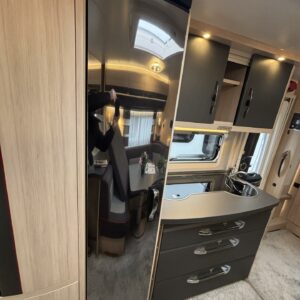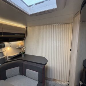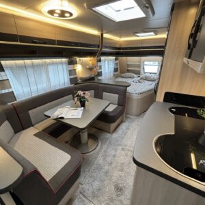 Alde, Jääkaappi, Kasetti WC, Kasettiverhot, Kattoluukku, Lattiamatot asunto-osassa, Liesi, Lämminvesiboileri, Markiisi, Nestekiertolämmitys, Pakastelokero, Parivuode, Pesuallas, Pyöräteline, Sähköpatruuna, Tukijalat, Lattialämmitys (sähkö), Kesärenkaat, kaasun ulosotto, Asuinosan hyttysovi/verho, mover, Kerrosvuoteet