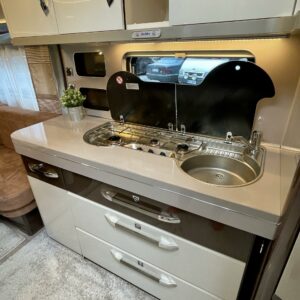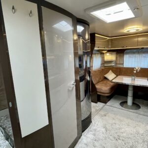 Hienokuntoinen Hobby jossa Premium- varustelutaso näkyy tyylikkyytenä sekä ulko- että sisäpuolella. 2,5 m kokonaisleveys tekee sisätiloista mukavan avarat.
