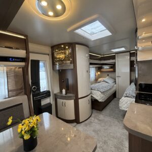 Alde, Erillisvuoteet, Jääkaappi, Kaasu-uuni, Kasetti WC, Kasettiverhot, Kattoluukku, Lattiamatot asunto-osassa, Liesi, Lämminvesiboileri, Markiisi, Nestekiertolämmitys, Pakastelokero, Pesuallas, Radio, Suihku, Sähköpatruuna, Tukijalat, Lattialämmitys (sähkö), Kesärenkaat, kwh-mittari, pullonvaihtaja, kaasun ulosotto, sähkön ulosotto, Asuinosan hyttysovi/verho